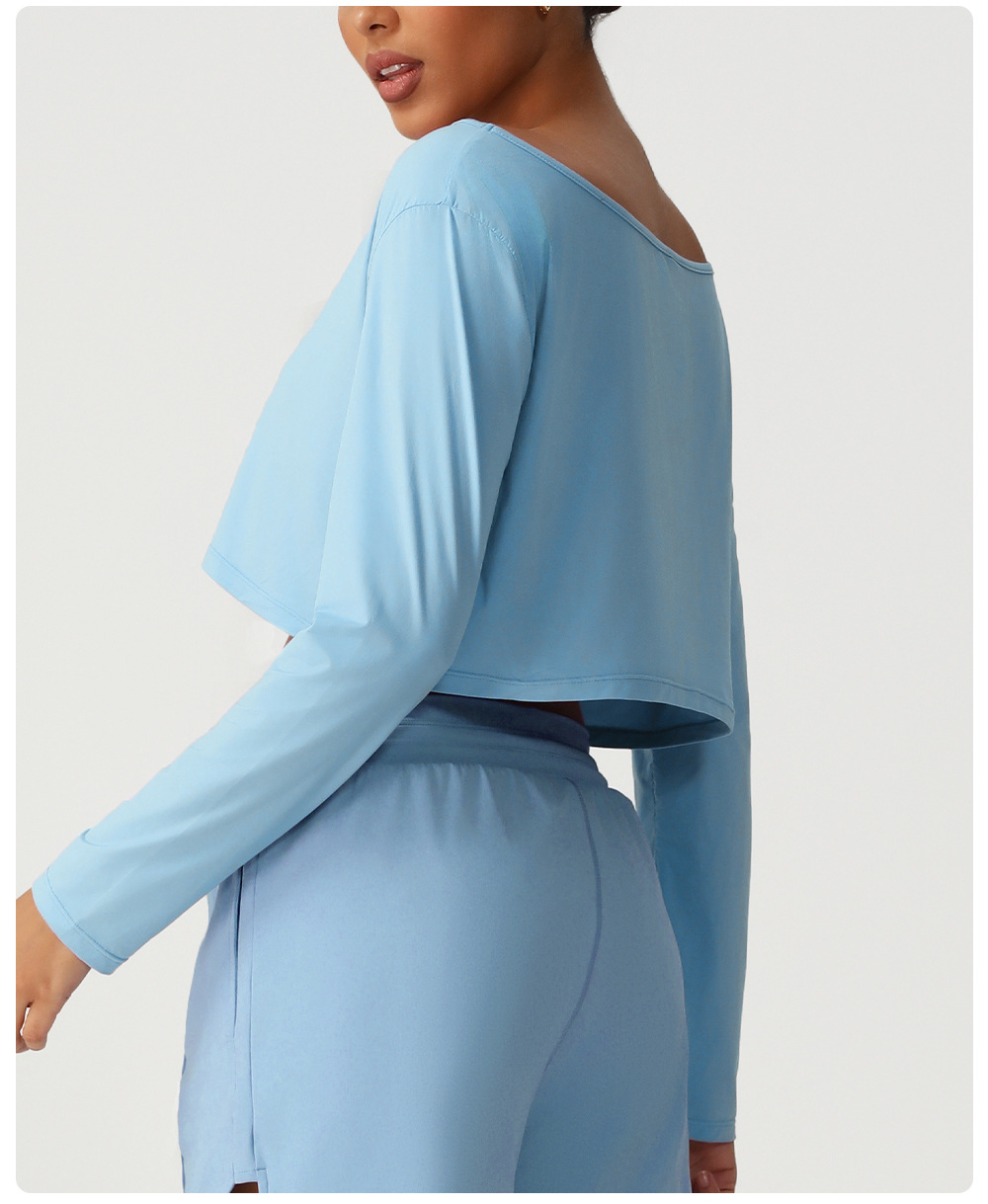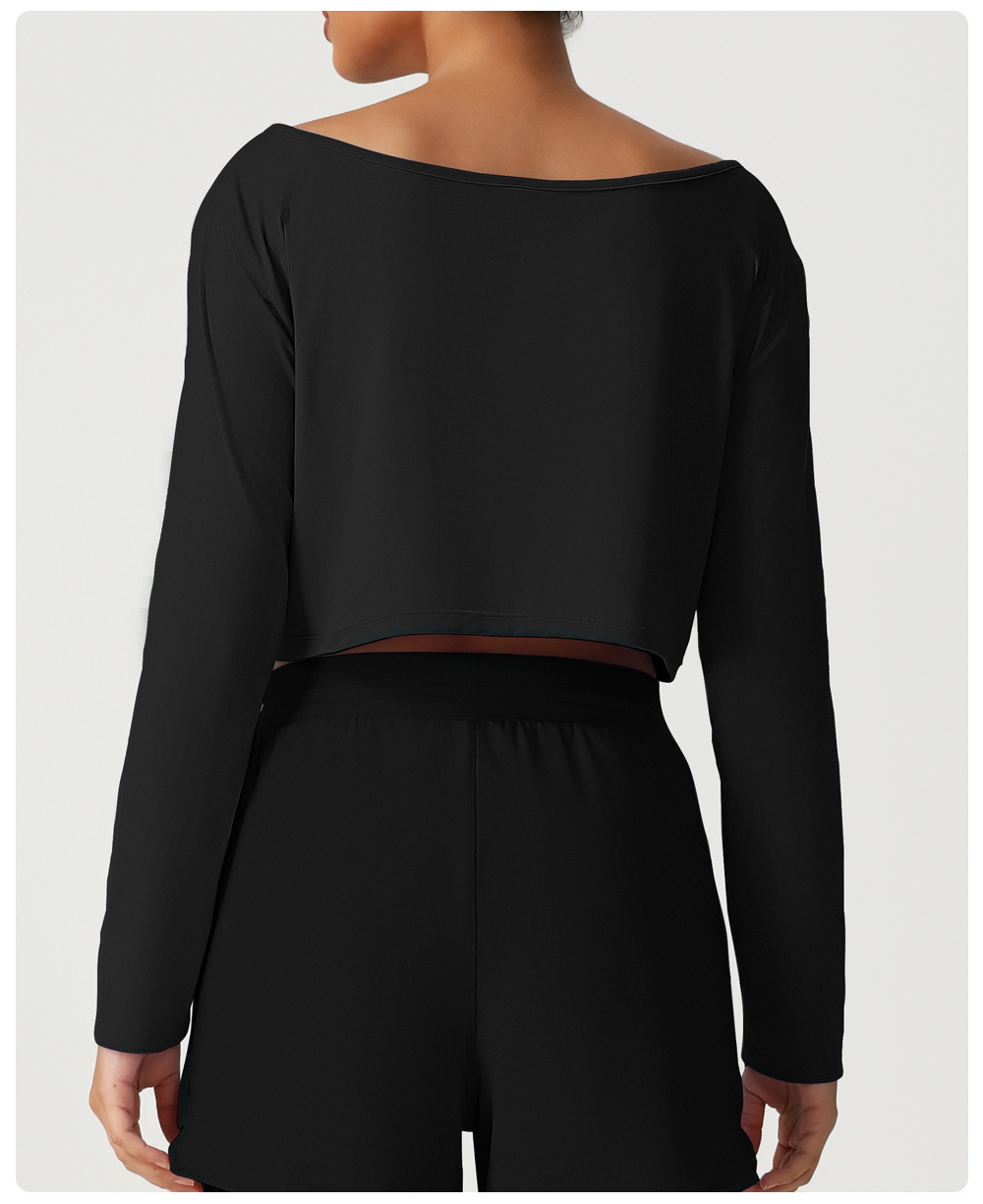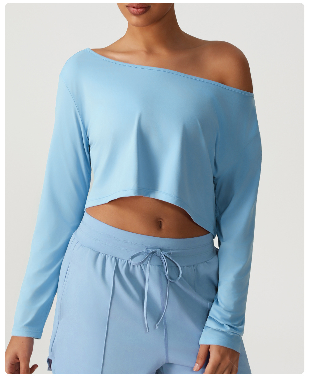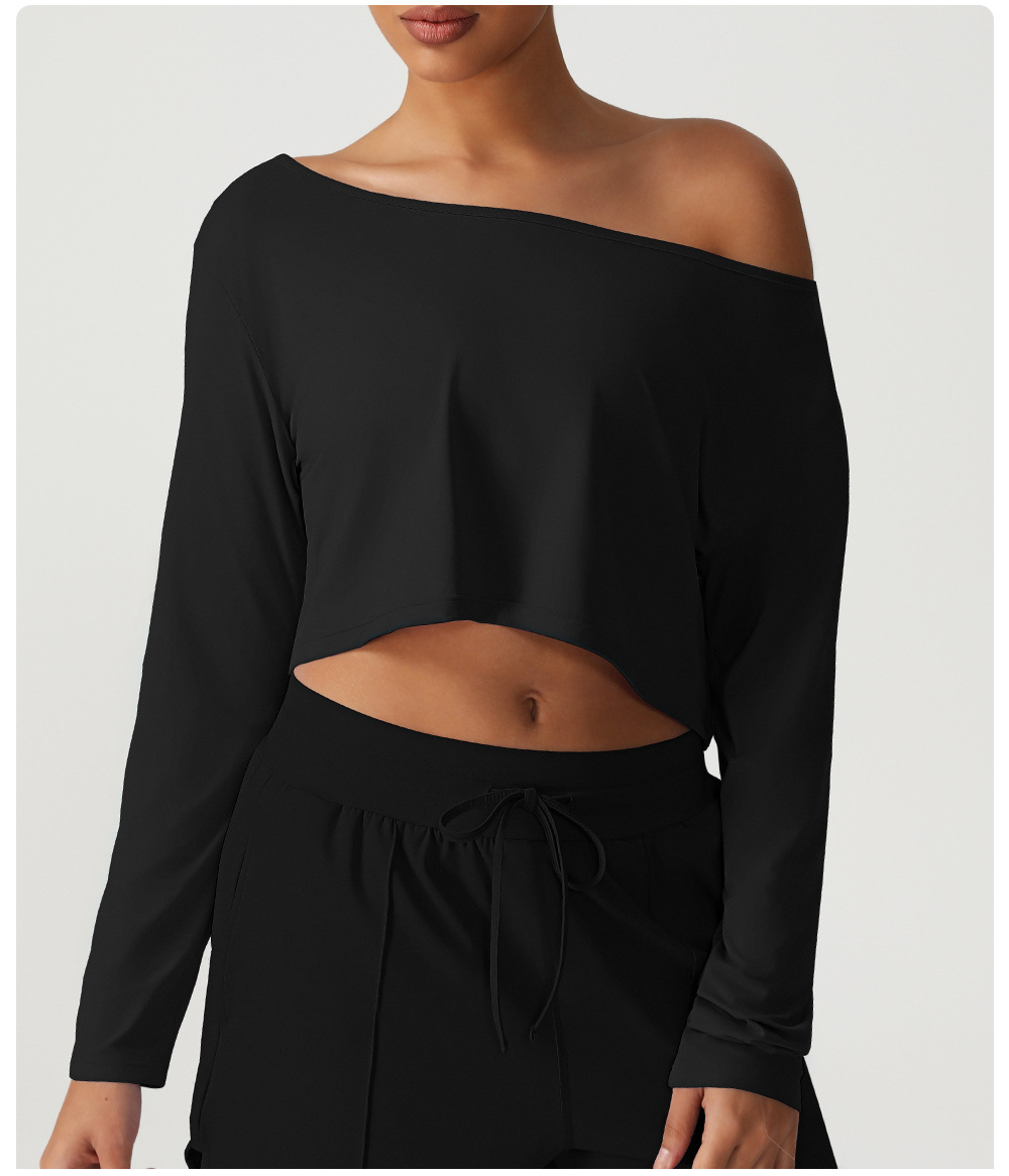Slant Shoulder Long Sleeve Sports Casual Top Skims High Elastic Loose Yoga Clothes T shirt Training Workout Clothes