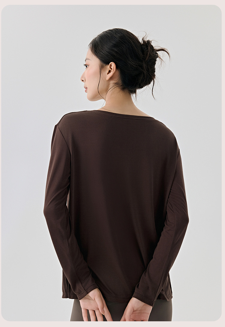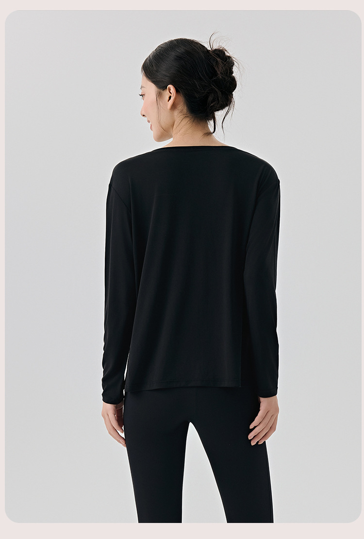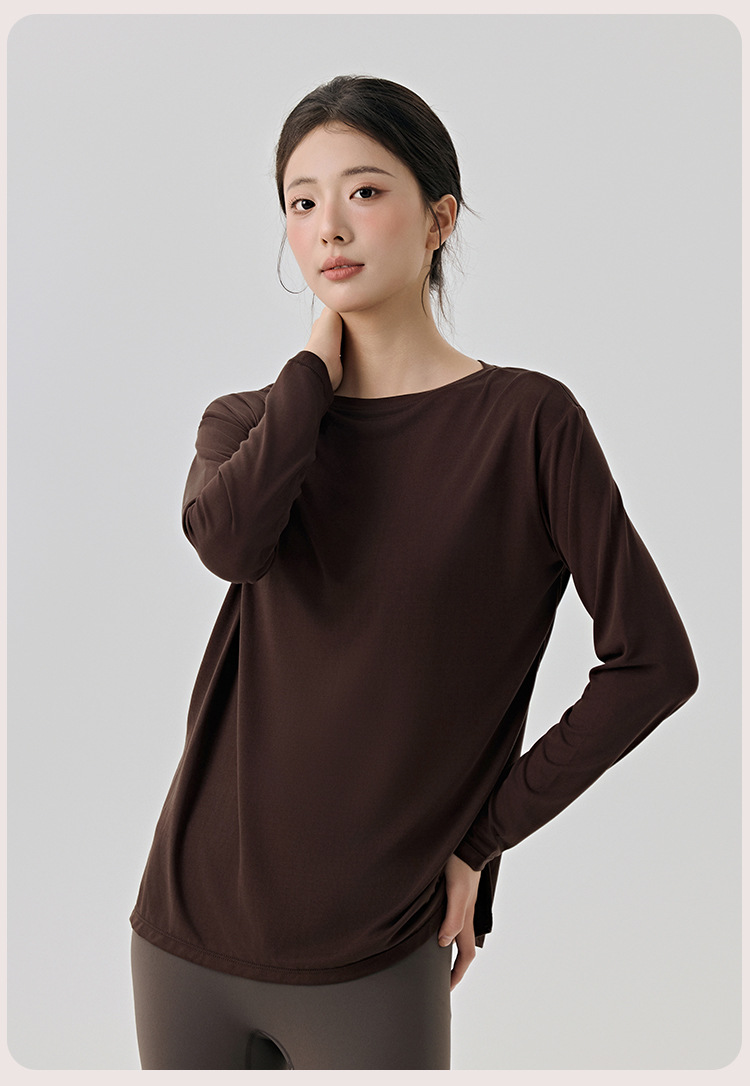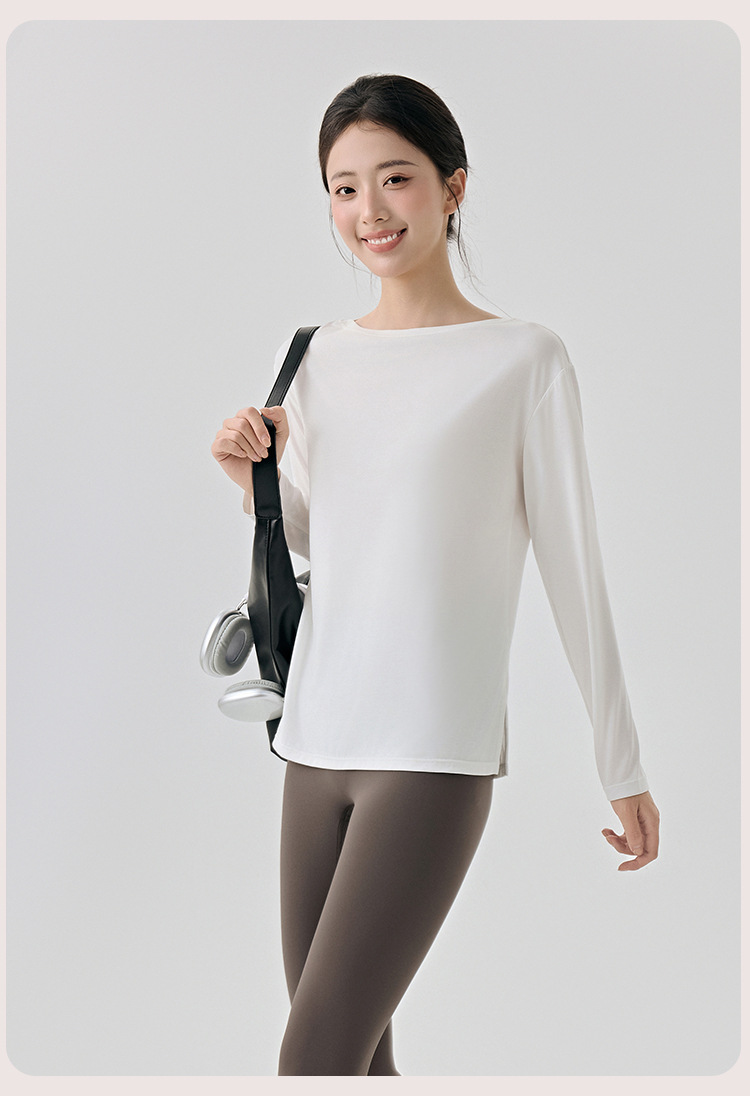 Slit Hemline at Hem Yoga Clothing Top Women Loose Breathable Workout Long Sleeve Slimming Sports Blouse
