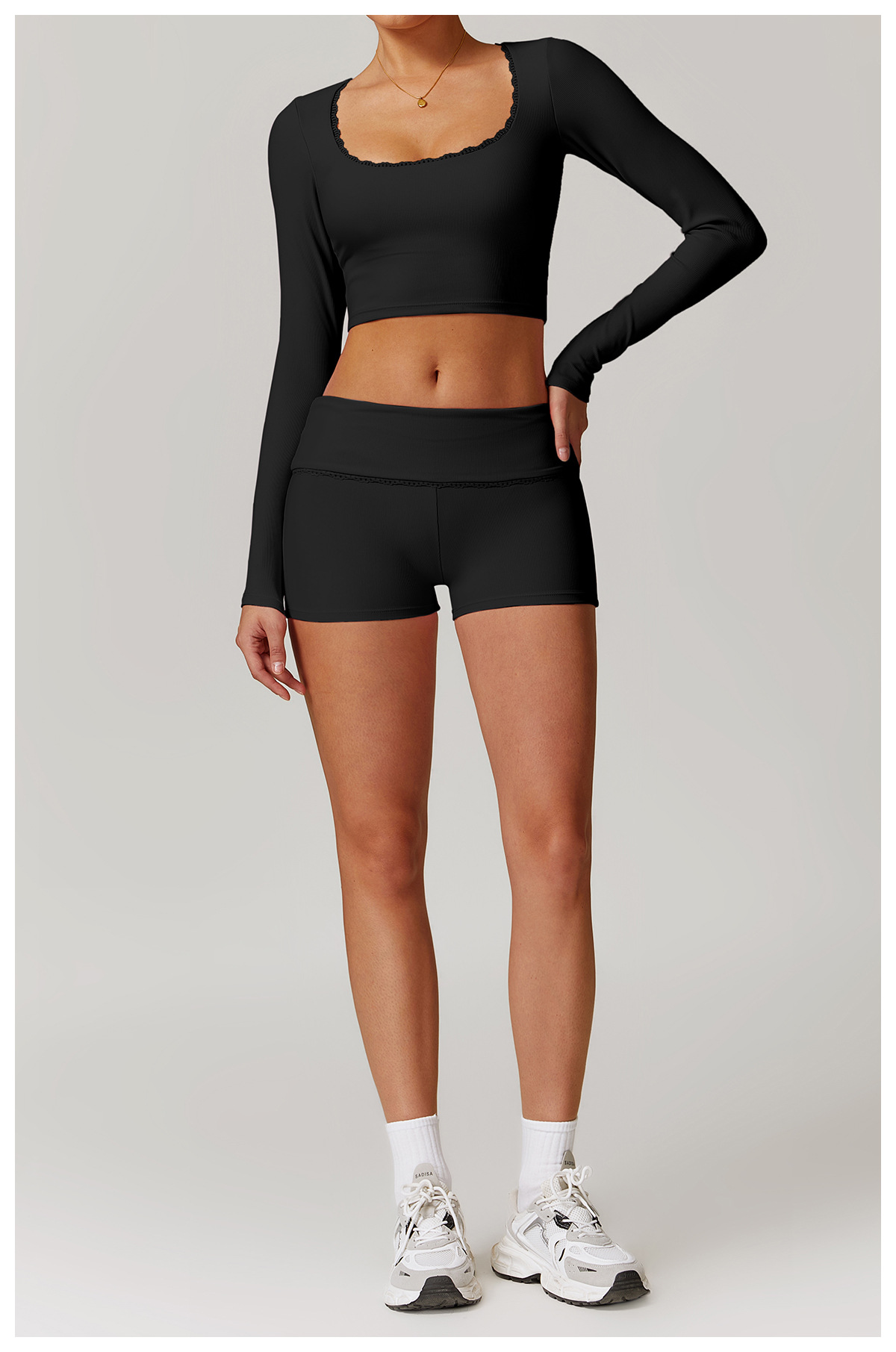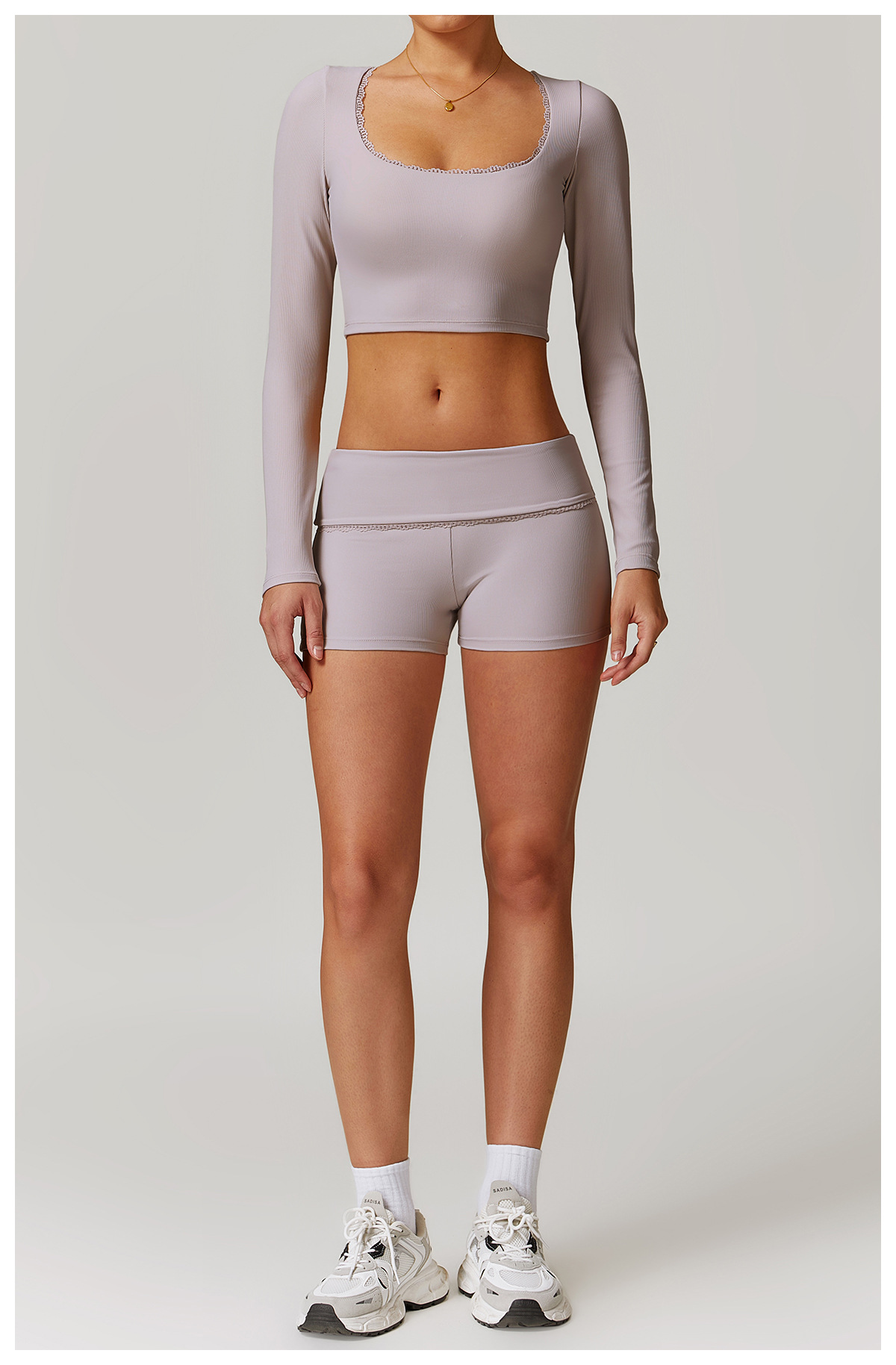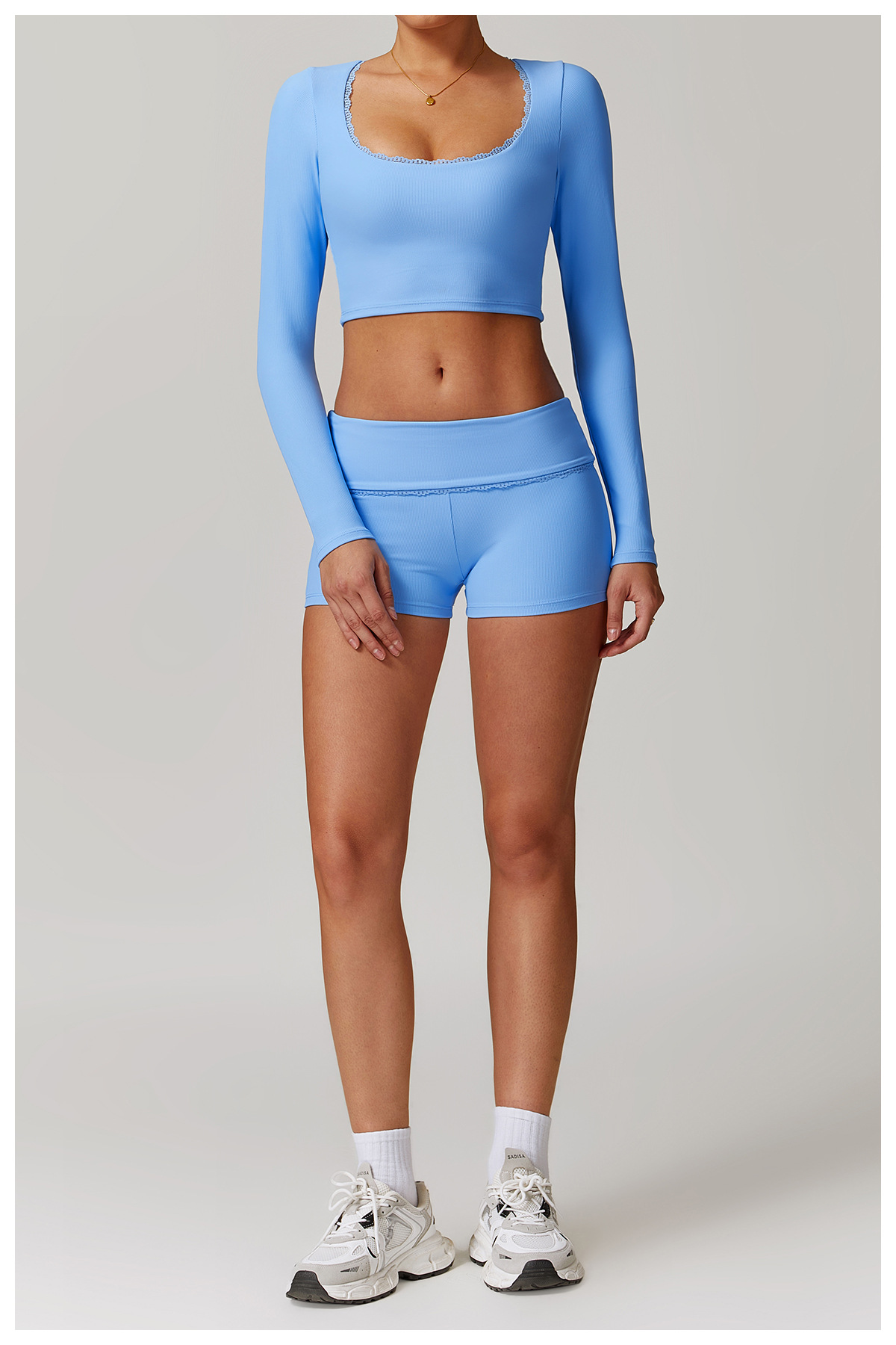 Sollinarry Zechuang Threaded Tight Long Sleeved T shirt Yoga Clothes Breathable Quick Drying Tight Yoga Jacket Fitness Sportswear