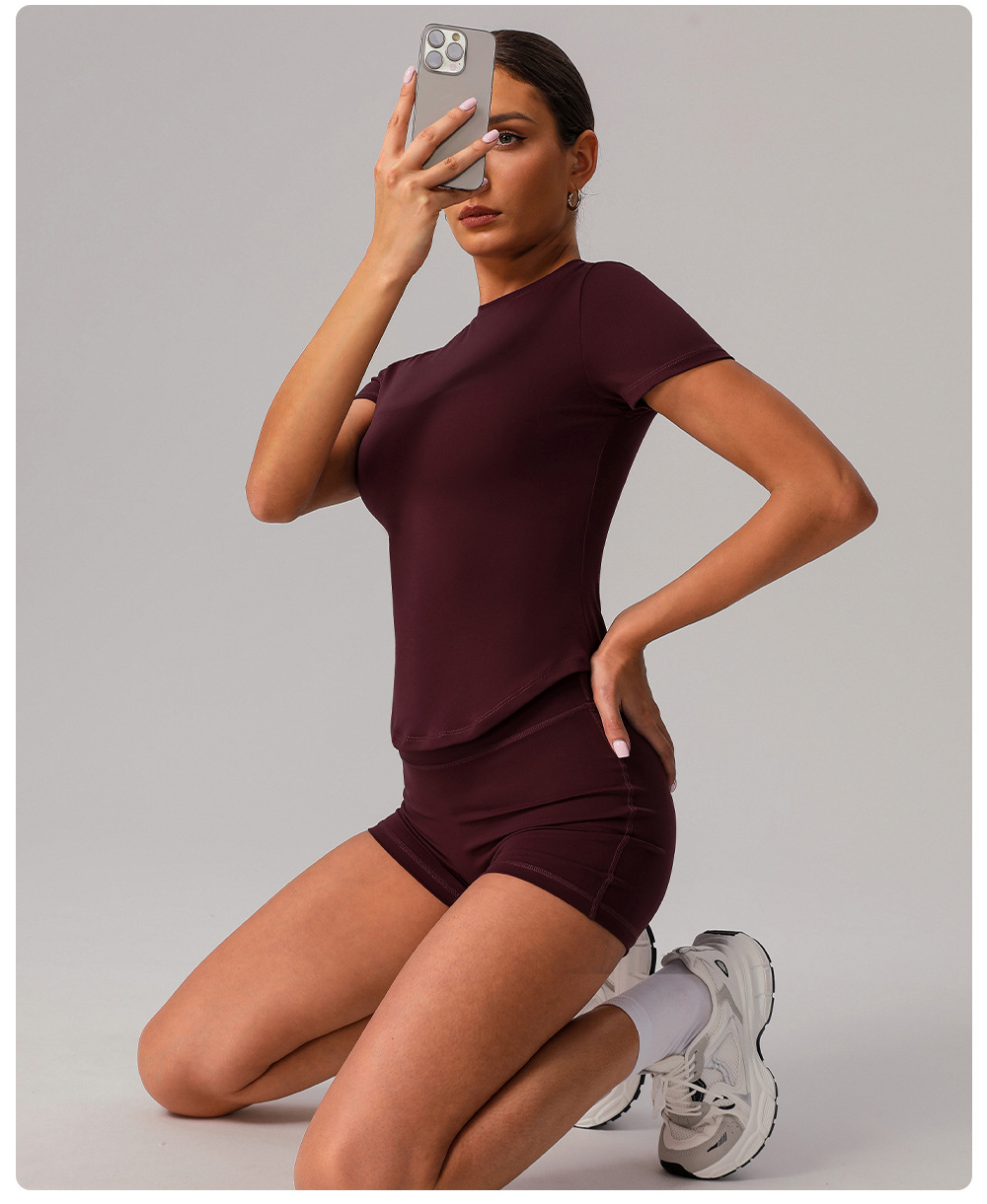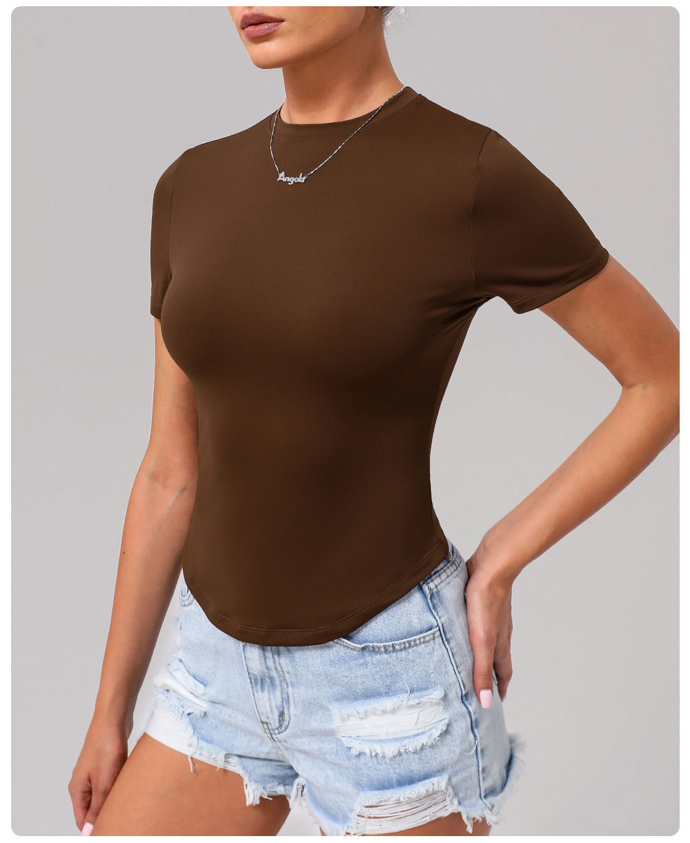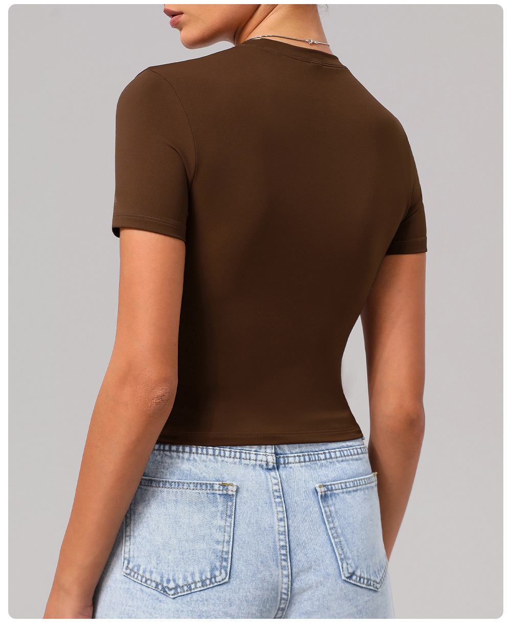 Sports Casual T shirt Yoga Clothes Short Sleeve Workout Top Tight Outdoor Running Sports round Neck Short Sleeve Women