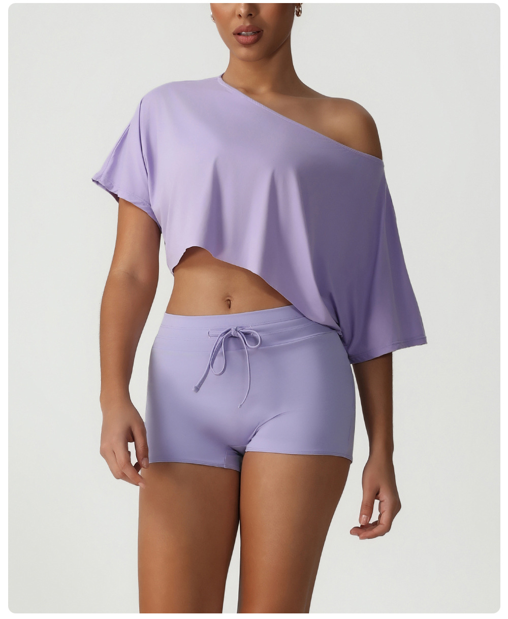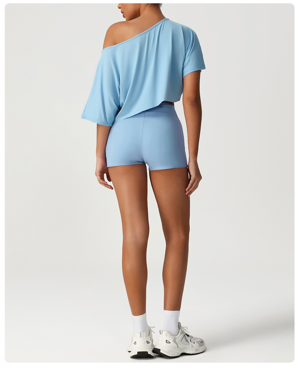 Sports Short Sleeved Casual Top Breathable off the Shoulder Short T shirt Women Fitness Running Smock Yoga Clothes