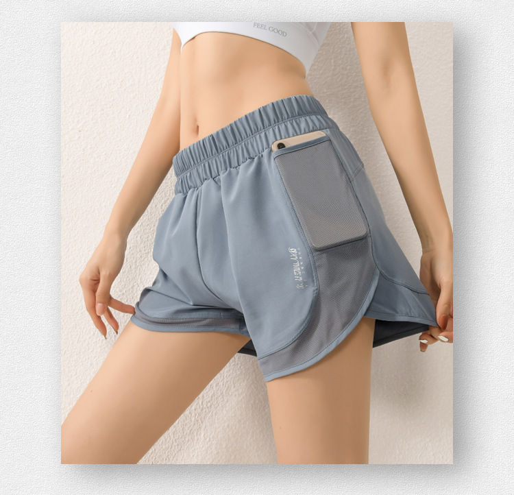 Sports Shorts Women Anti-Exposure Loose Mesh Double Pocket Quick-Drying Running Aerobic Fitness High Waist Outer Shorts