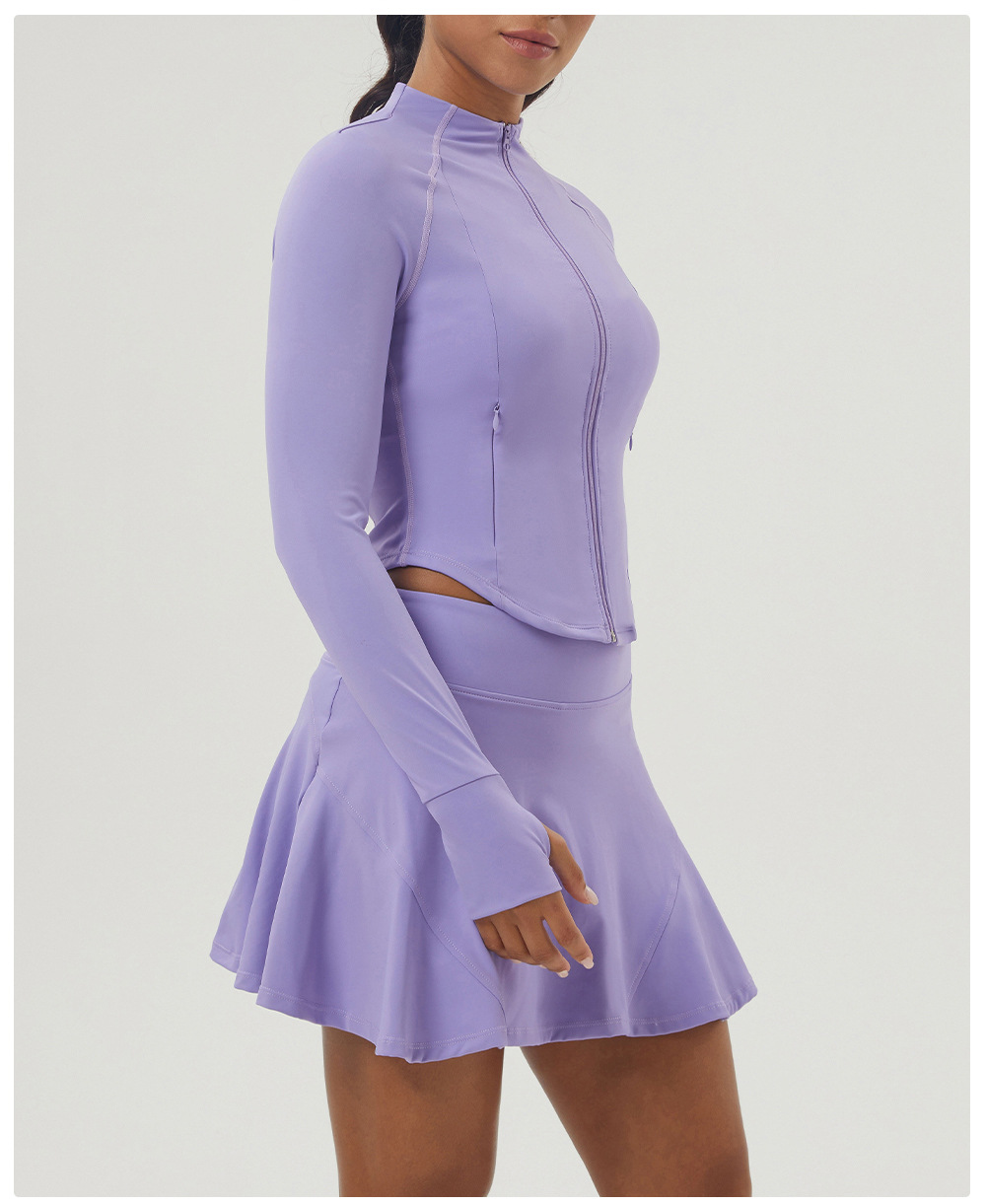 Sports Tennis Skirt Set Women Pocket Zipper Jacket Yoga Clothes High Elastic Casual Culottes Two Piece Set
