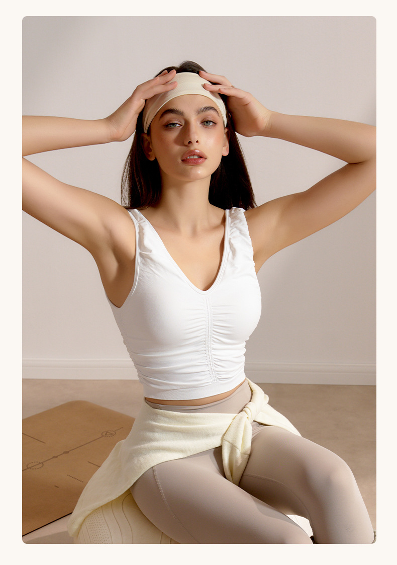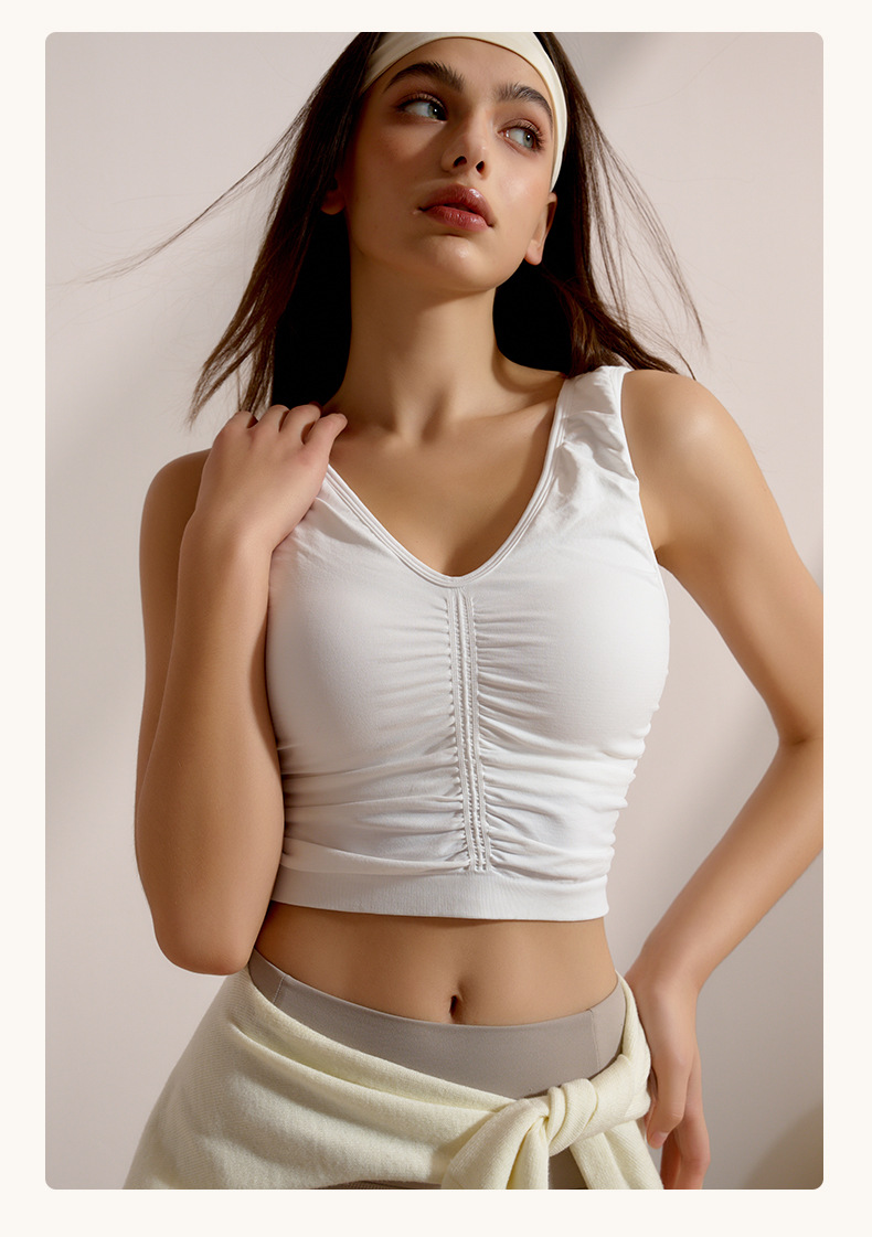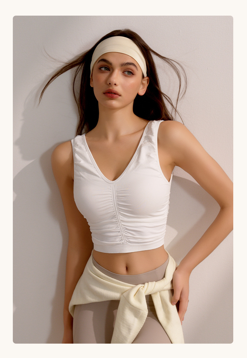 Spring Summer Arrival Pleated Push up Yoga Bra Vest Beauty Back Shaping Sexy Outdoor Yoga Bra Top
