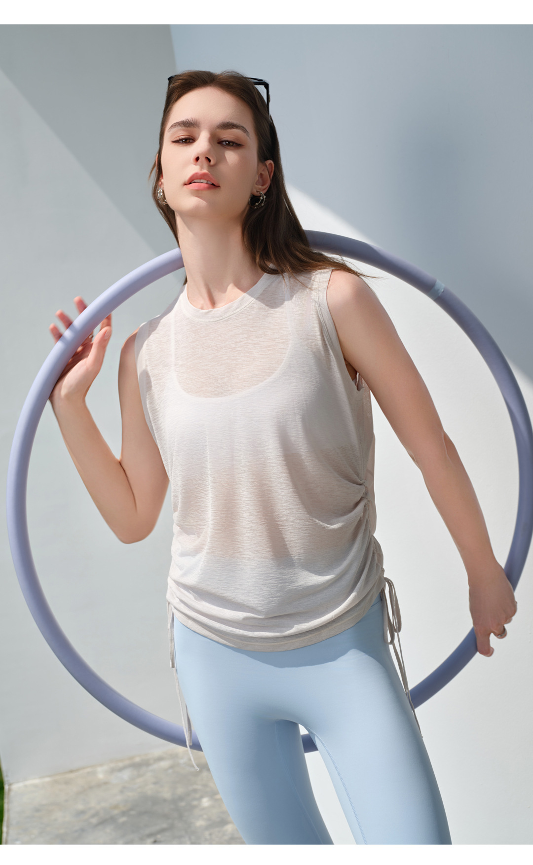 Spring Summer Drawstring Sports Top Women Loose Casual Quick Drying Sleeveless Yoga Vest Thin Workout Top