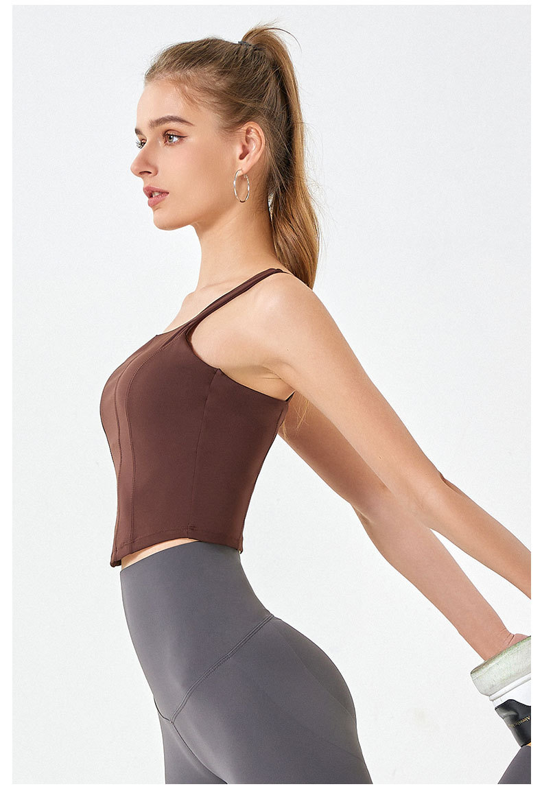 Spring Summer Nude Feel Sports Vest With Chest Pad Women High Elastic U Collar Yoga Underwear Running Shockproof Workout Beauty Back
