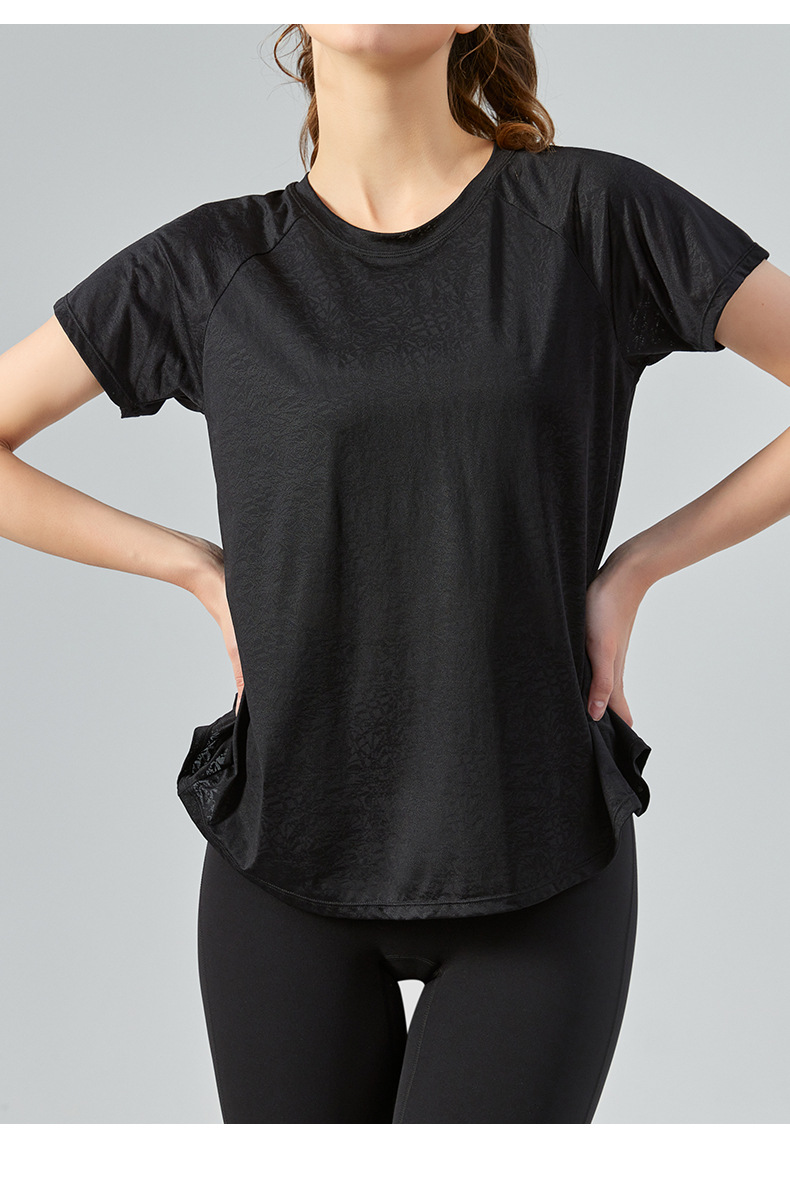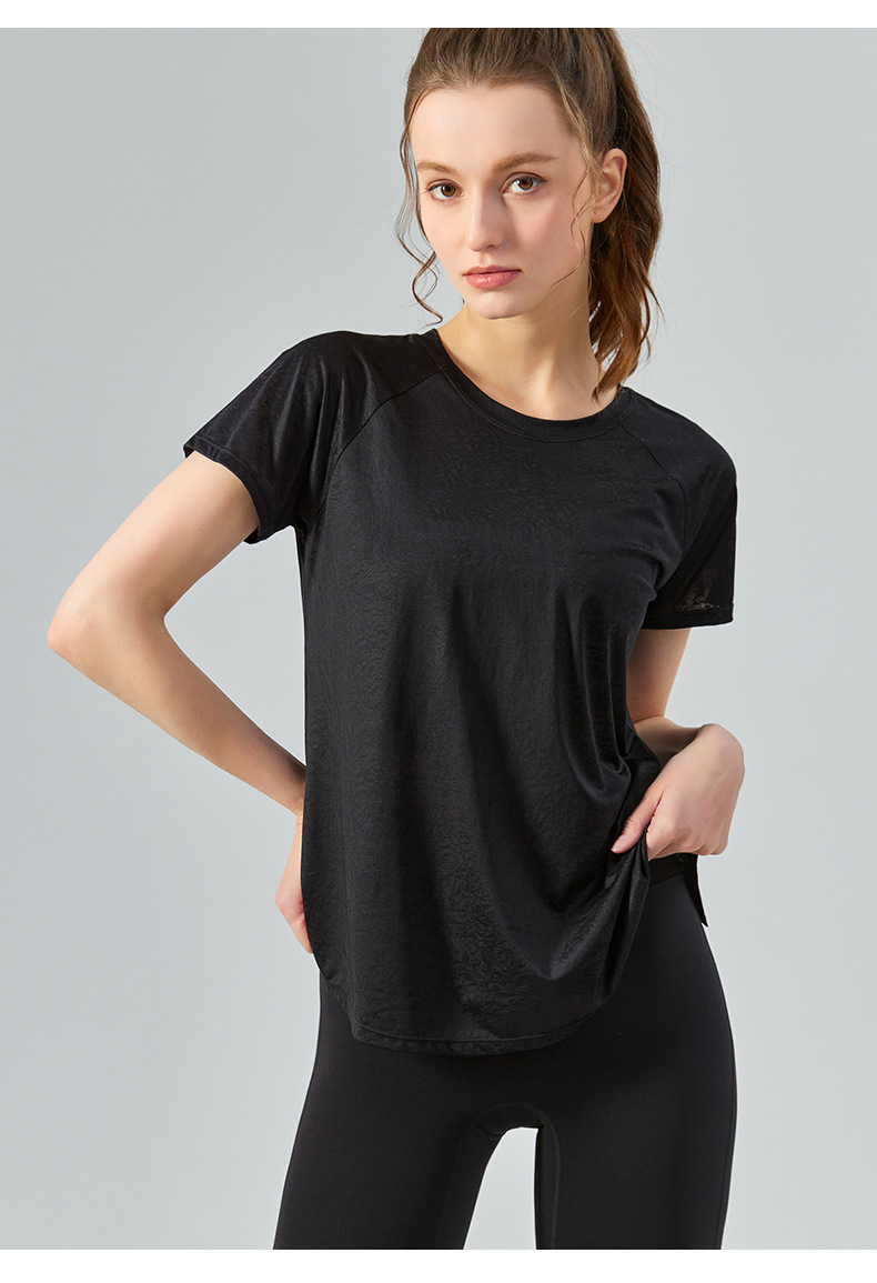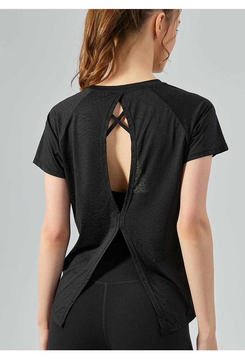 Spring Summer Outdoor Yoga Jacket Jade Jacquard Back Slit Hollow Out Cutout Beauty Back Sports Fitness Yoga Wear Blouse Women