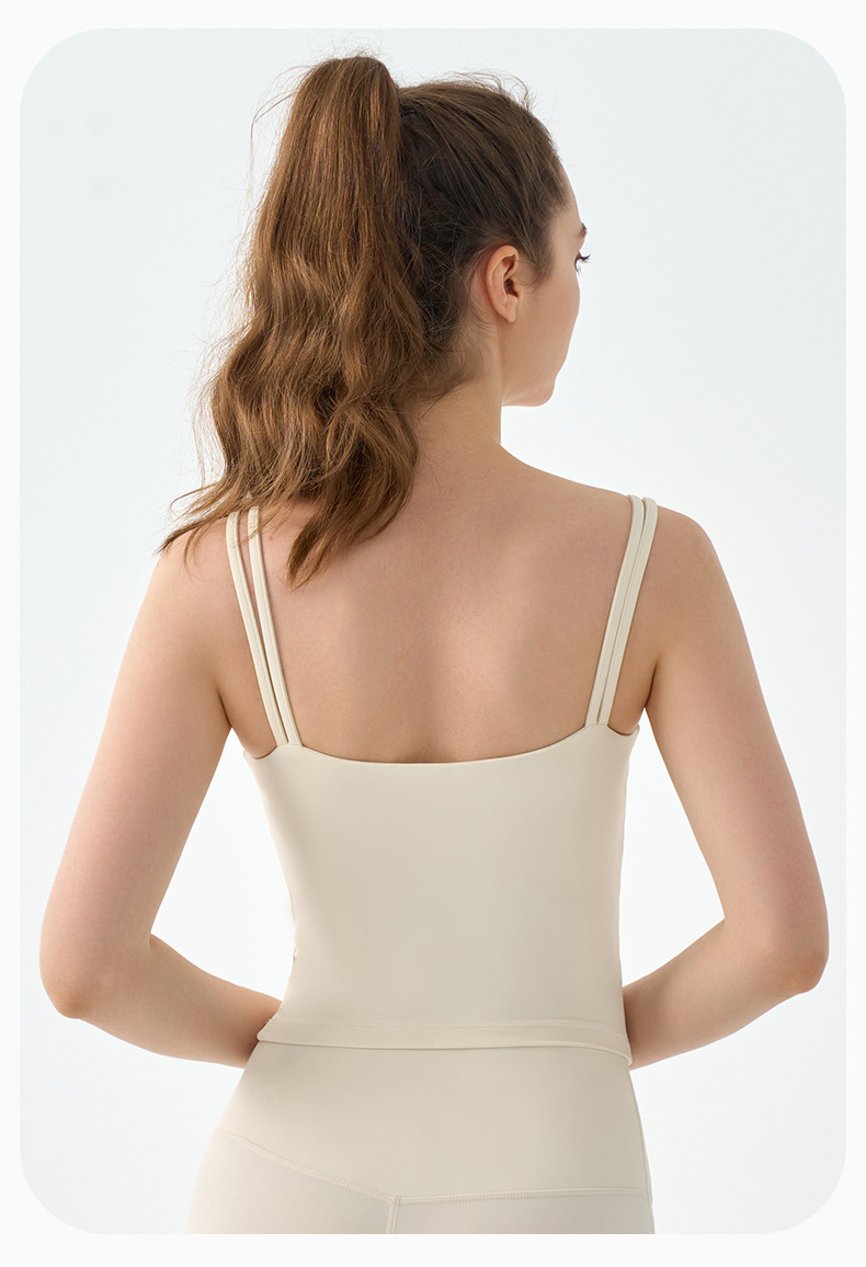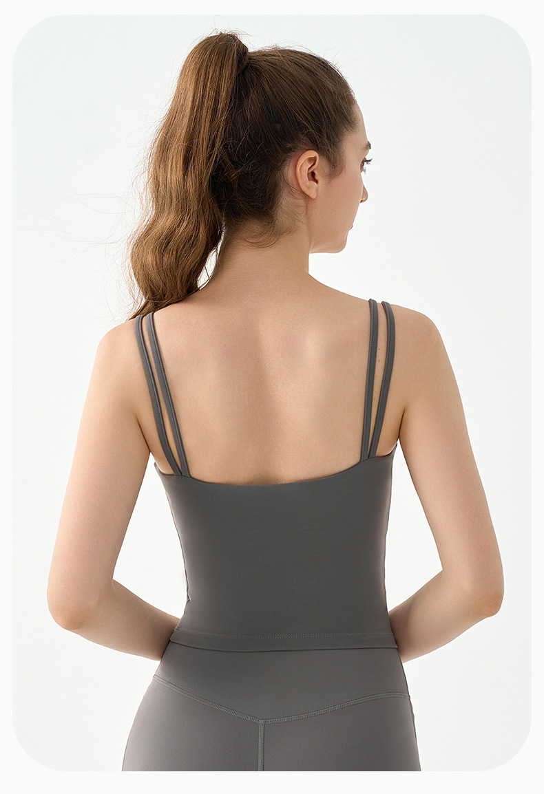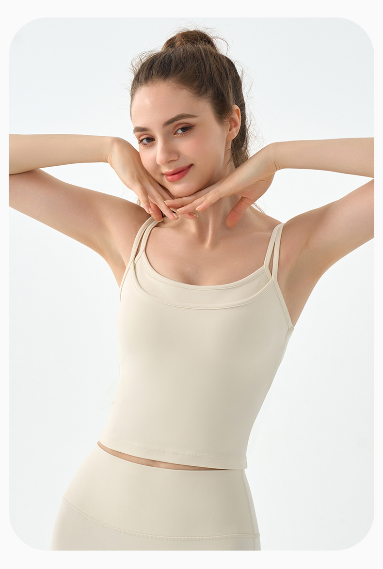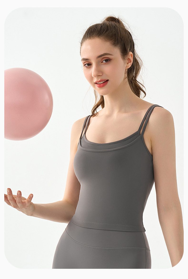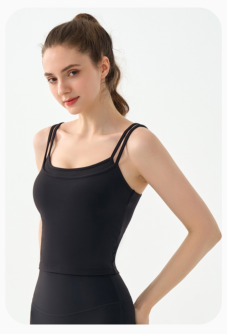 Spring Summer Sexy Faux Two Piece Suspender Yoga Vest Women With Chest Pad Double Shoulder Strap Sexy Beauty Back Fitness Inner Wear Blouse