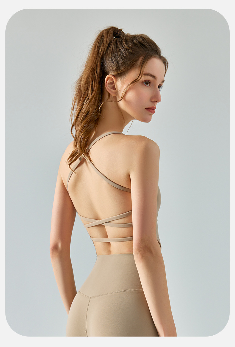 Spring Summer Sports Vest Cross Strap Backless Traceless Nude Feel Breathable Yoga Sports Fitness Yoga Wear Women