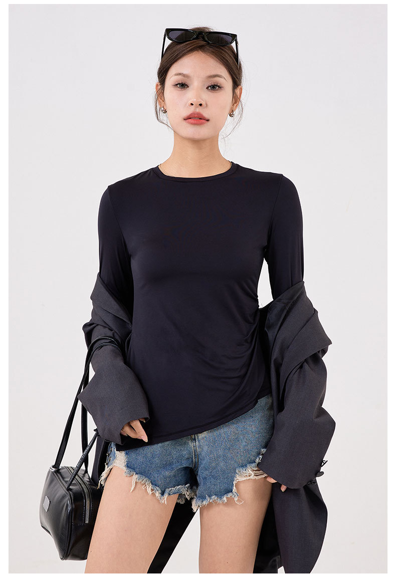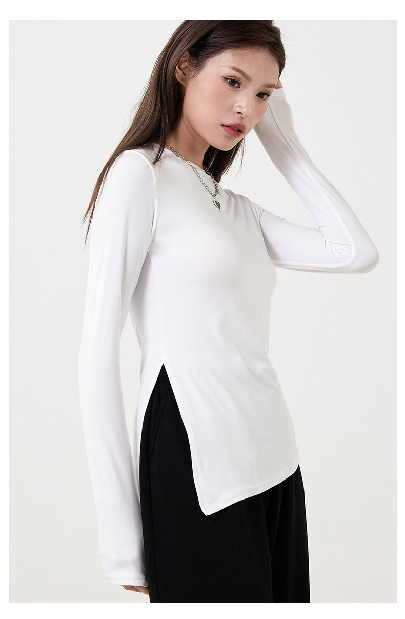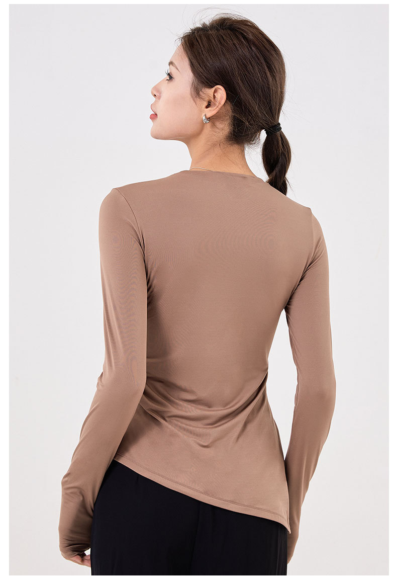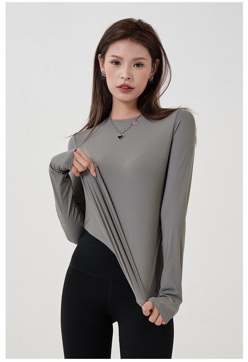 Spring Summer Yoga Double Layer Cloud Soft Shirt Women Crew Neck Split Tight Sports Fitness Top Outer Wear Bottoming Shirt
