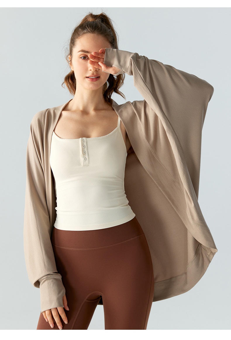 Spring Yoga Blouse Women Thin Bathrobe Sports Long Sleeves Outer Match Cardigan Workout Top Coat