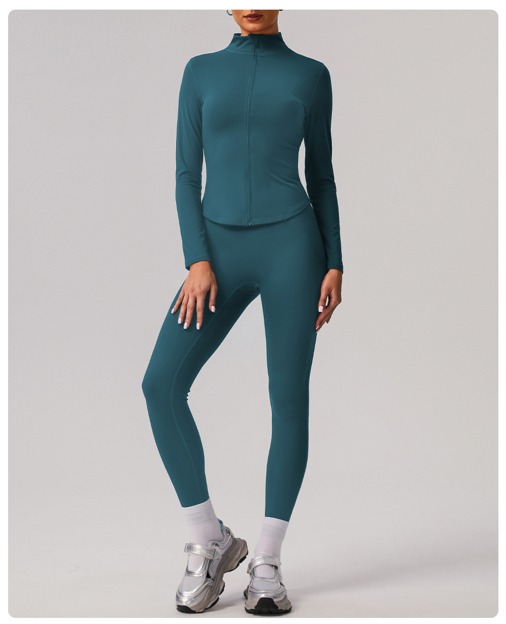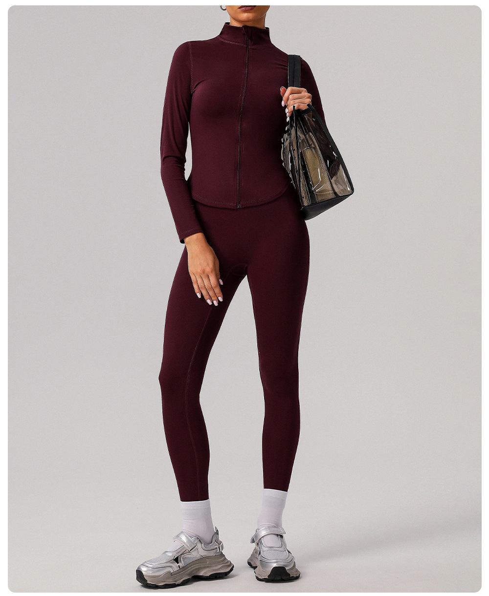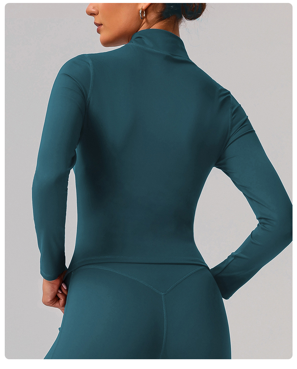 Stand Collar Zipper Yoga Clothes Women Jacket Windproof Slim Long Sleeve Top Sports Running Solid Color All Matching Jacket