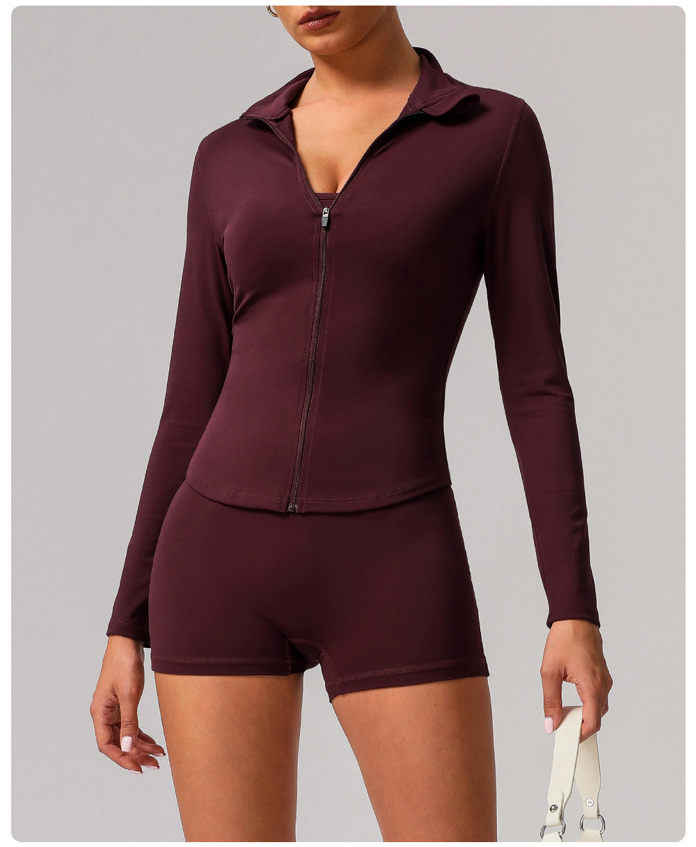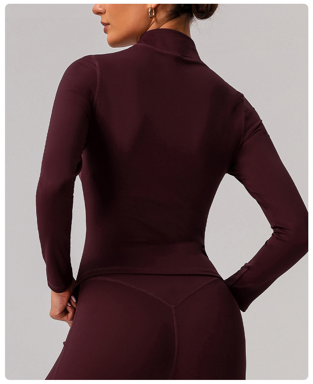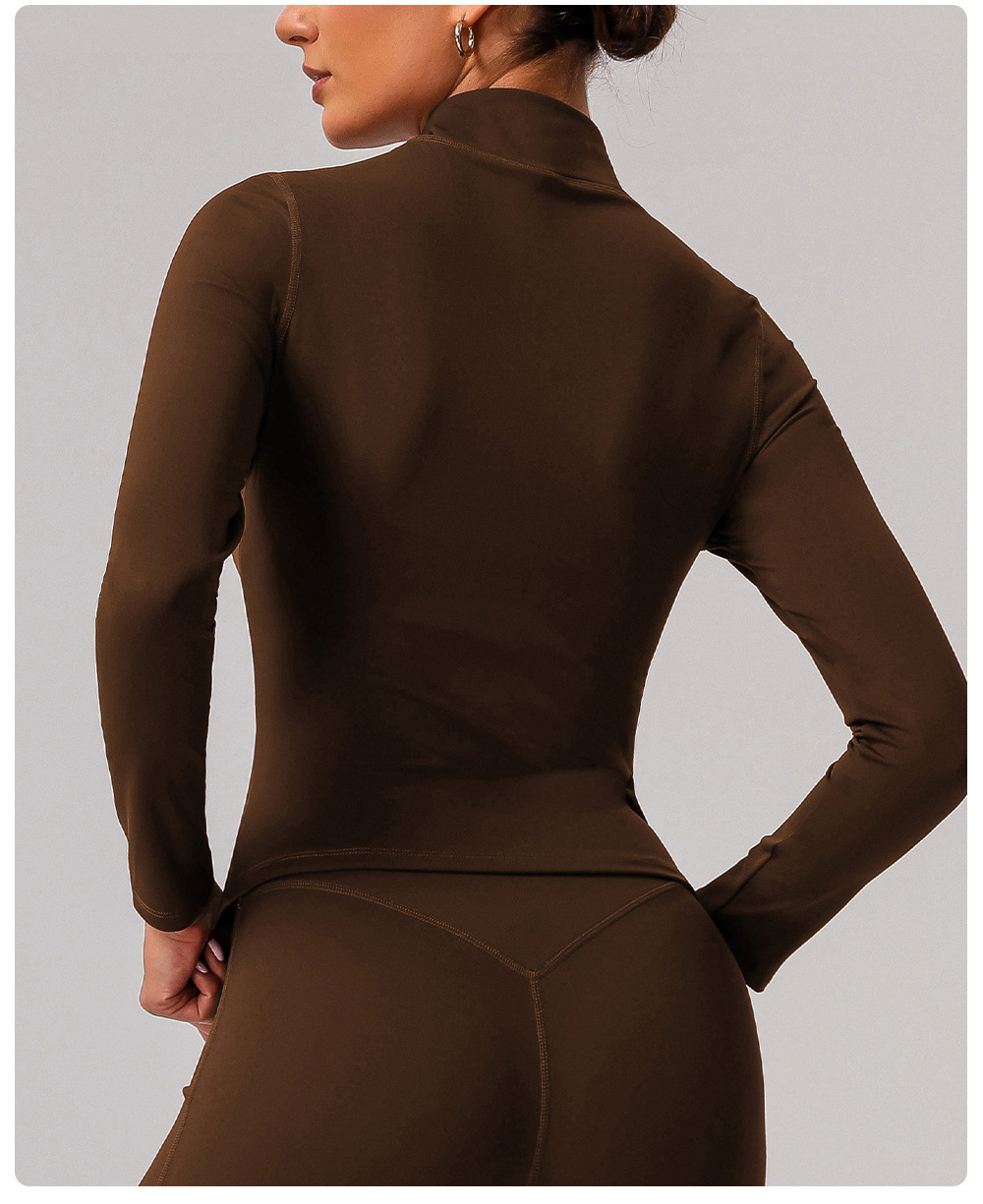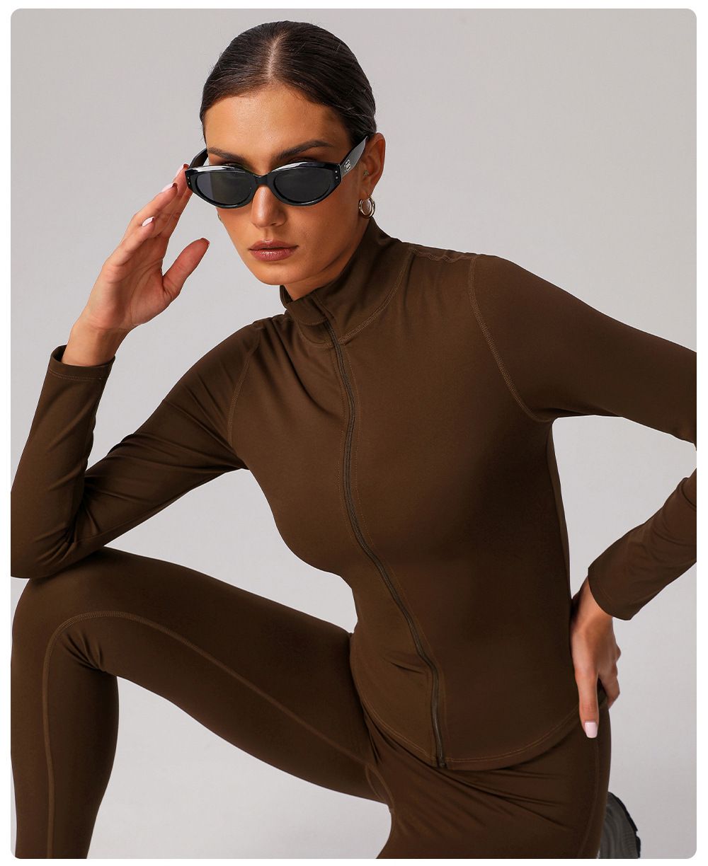 Stand Collar Zipper Yoga Clothes Women Jacket Windproof Slim Long Sleeve Top Sports Running Solid Color All Matching Jacket
