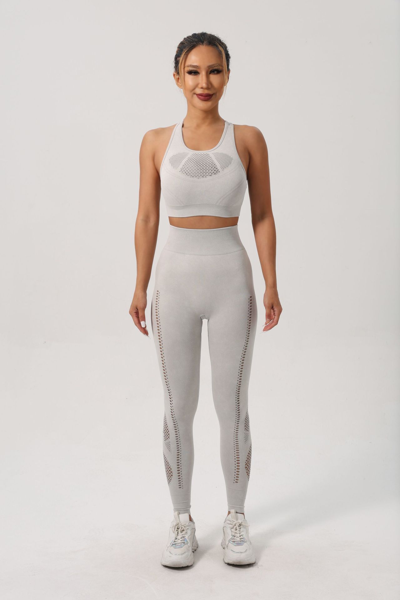 Stone Washed Seamless Knitted Yoga Clothes Suit High-Grade Frosted Yoga Clothes Summer Women Yoga Clothes