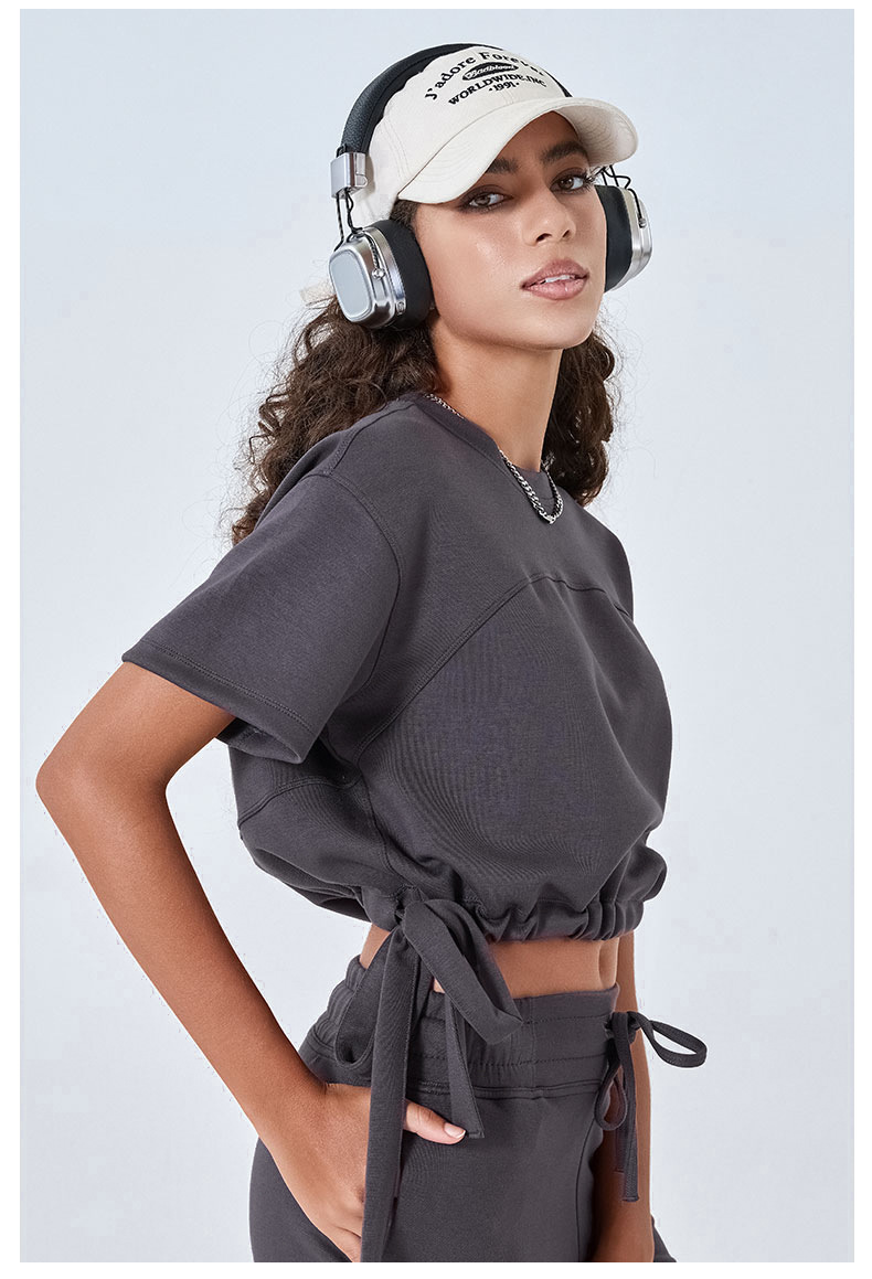 Summer Air Layer Rayon Yoga Clothes Shorts Suit Loose Slimming Round Neck Drawstring Workout Top
