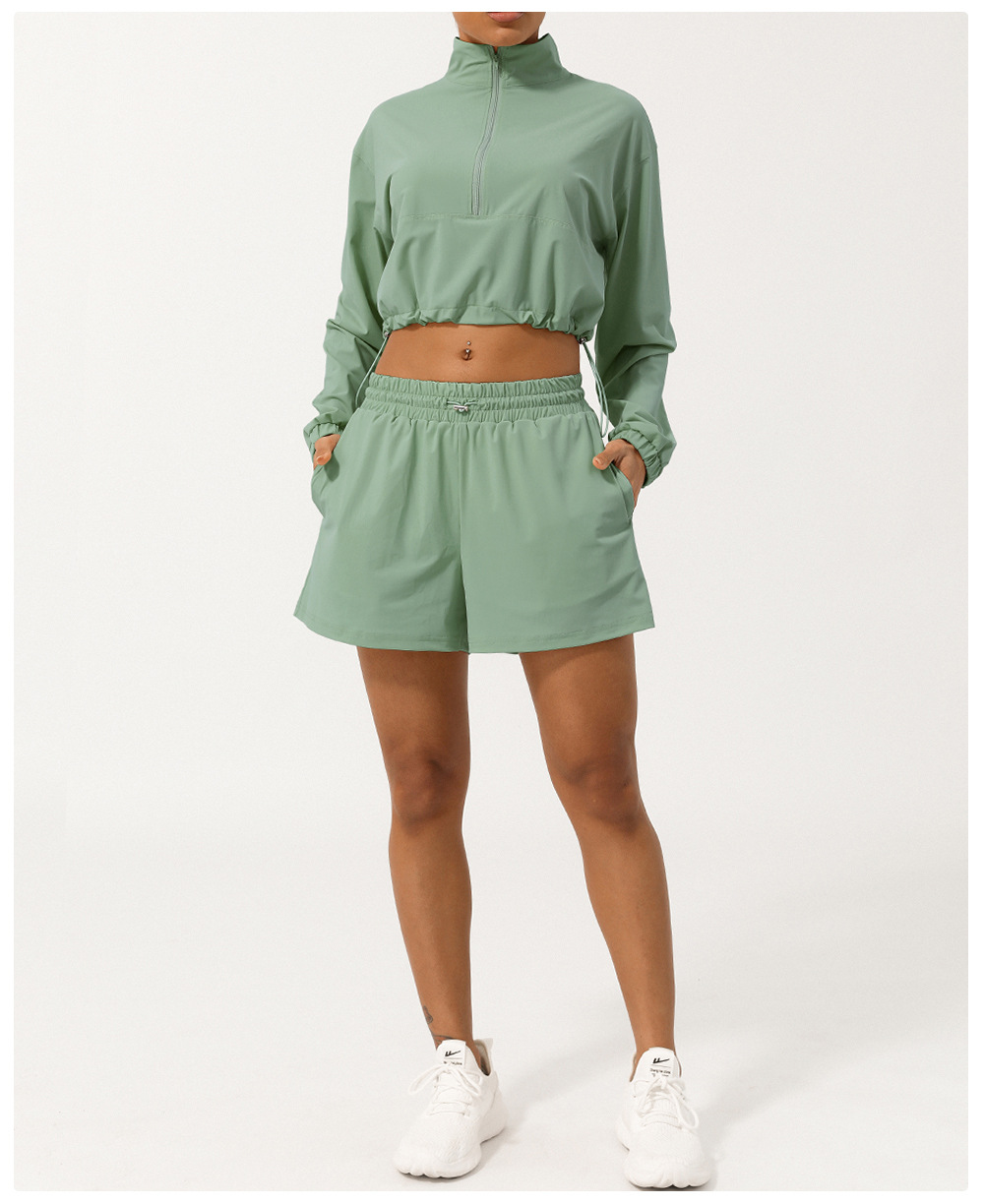 Summer Half Zipper Turtleneck Sun Protection Yoga Clothes Coat UV Protection Outdoor Skin Clothing Hoodie With Drawstrings Sun Protective Clothing