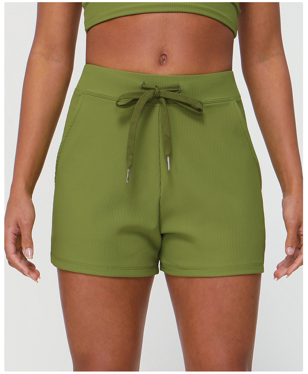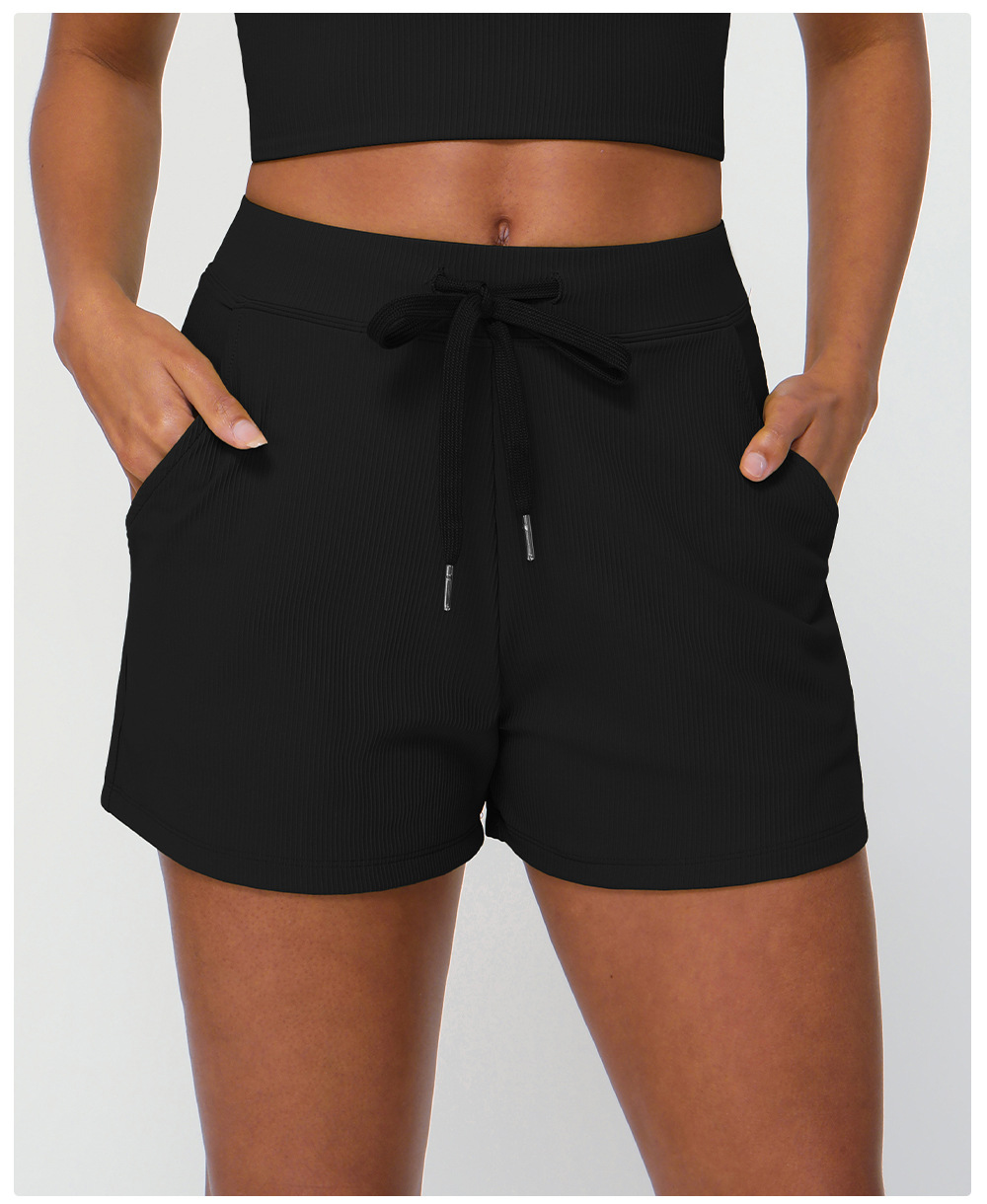 Summer Rib Loose Casual Shorts Women Drawstring Quick Drying Yoga Shorts Pocket High Elastic Exercise Shorts
