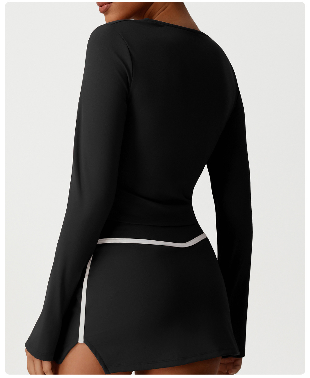 Tight Waist Low Collar Casual Top Slim Fit High Elastic Yoga Clothes Long Sleeve T shirt Dance Sportswear