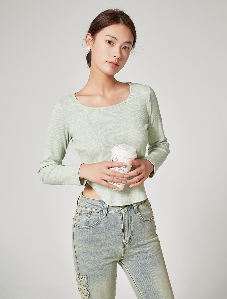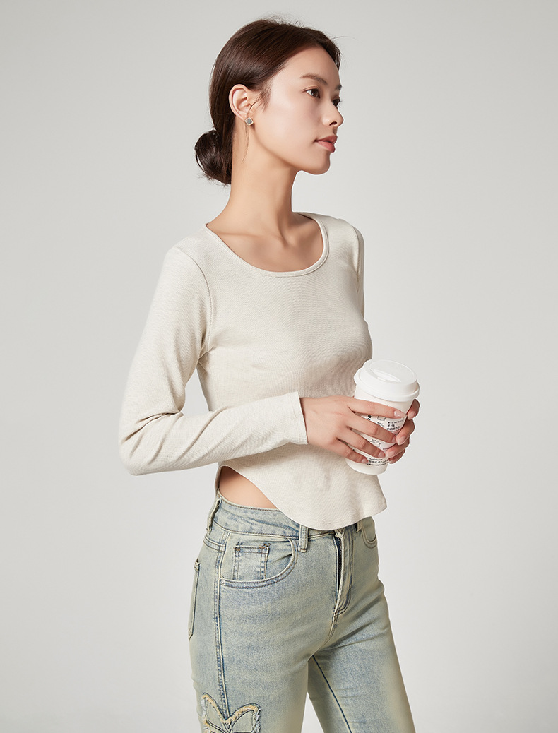 U Neck Bottoming Shirt Women Autumn Winter Korean Slim Fit Slimming Sense Design Long Sleeve T Shirt Top