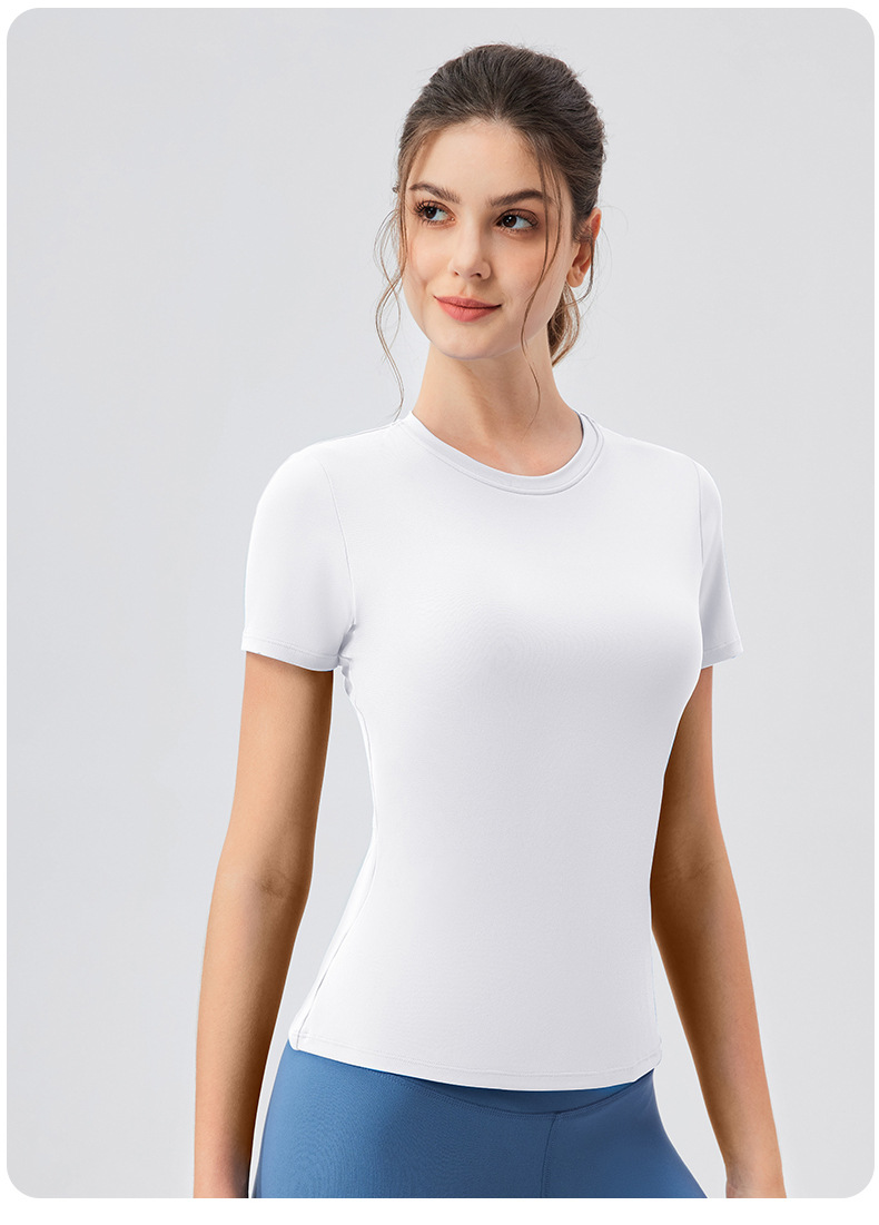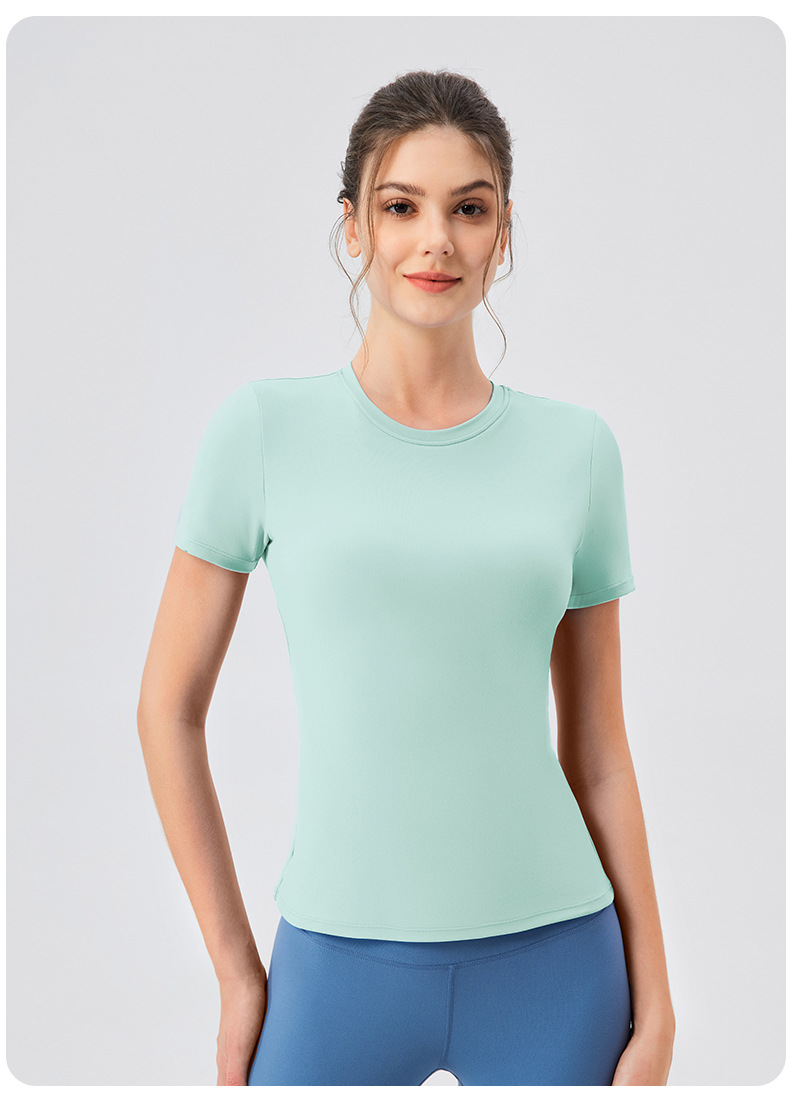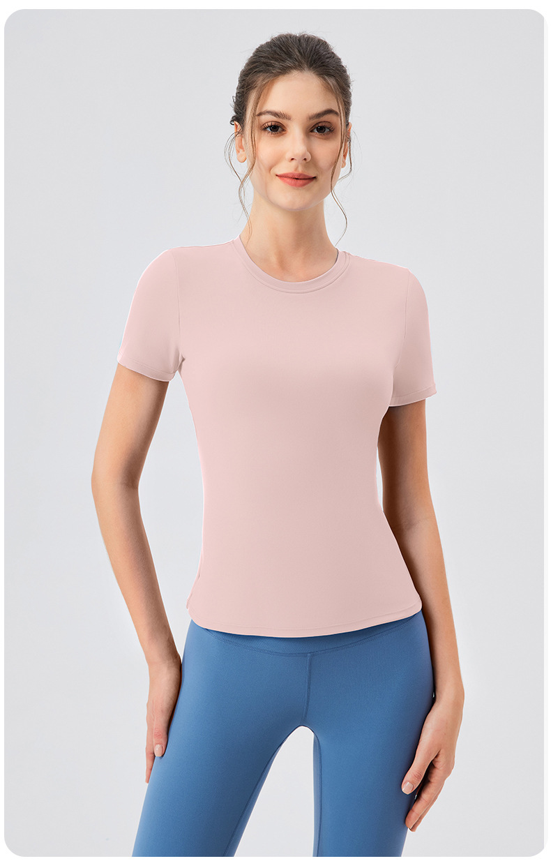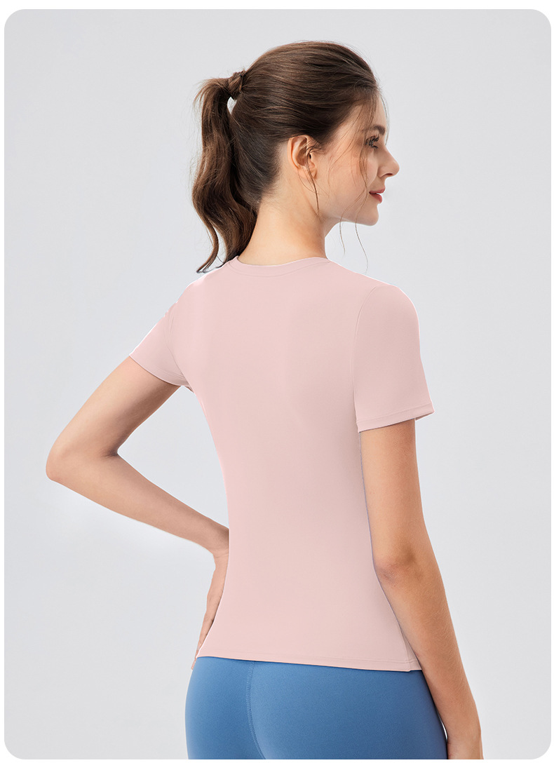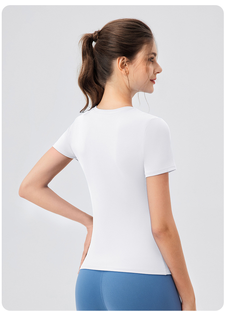 Women Summer Yoga Short Sleeve With Chest Pad Nude Feel Breathable Quick Drying Running Workout T Shirt Skinny Slimming Exercise Yoga Clothes