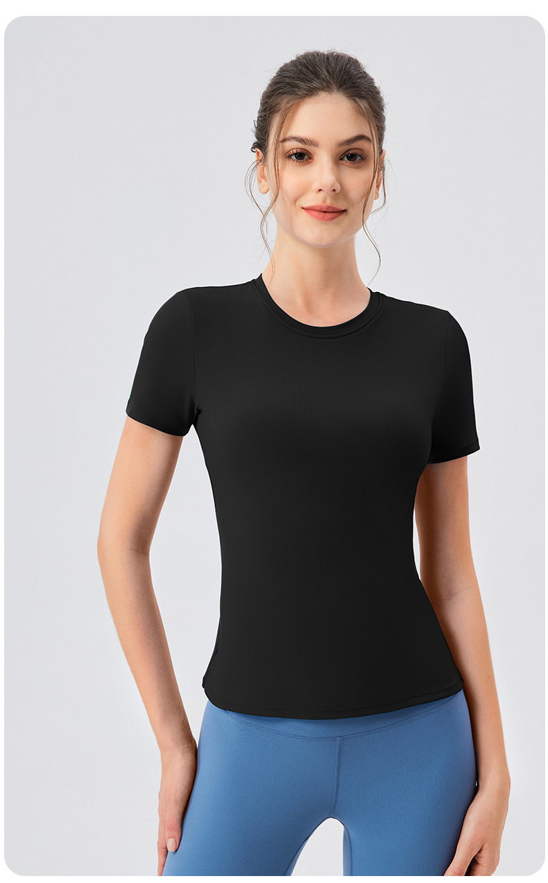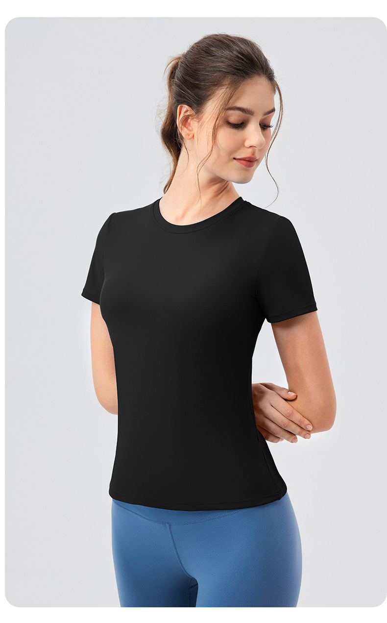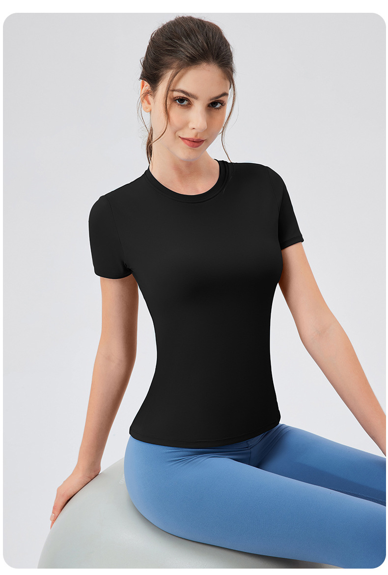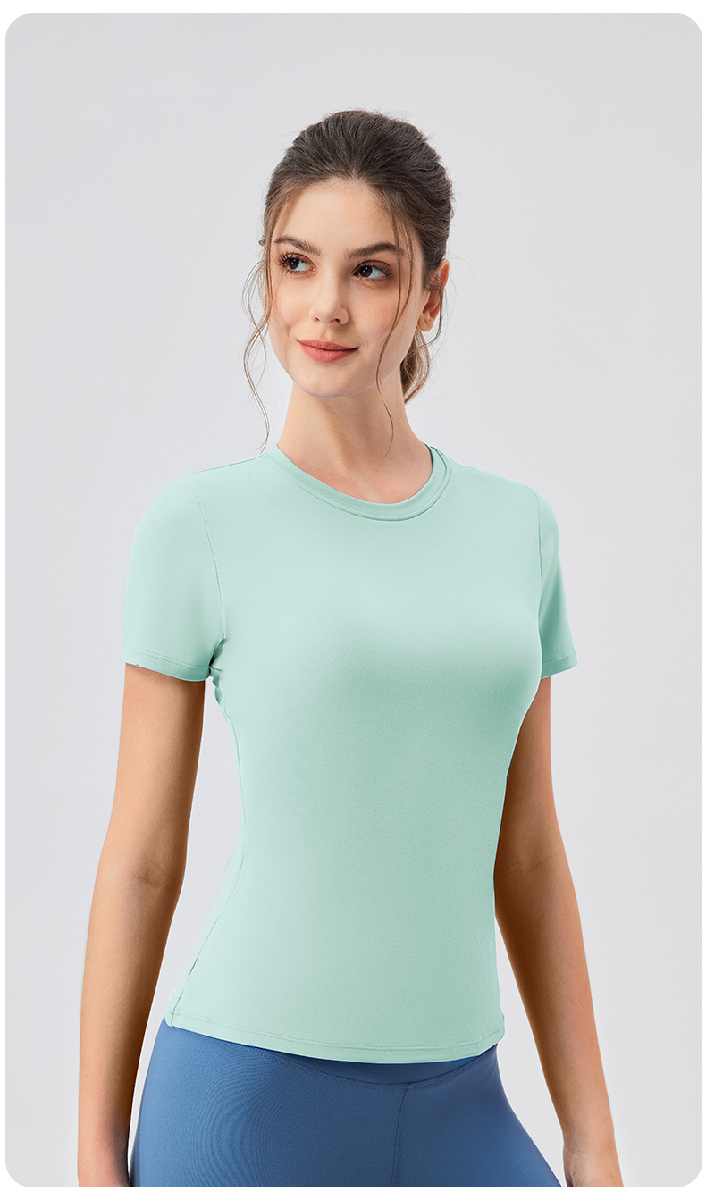Women Summer Yoga Short Sleeve With Chest Pad Nude Feel Breathable Quick Drying Running Workout T Shirt Skinny Slimming Exercise Yoga Clothes