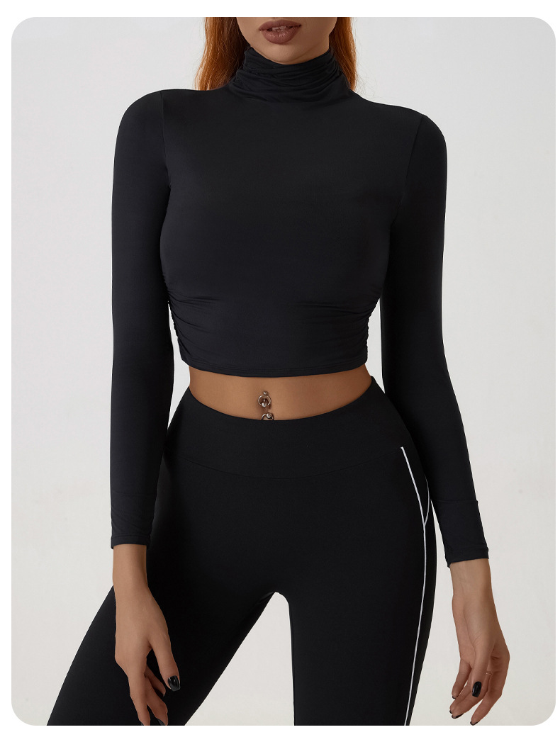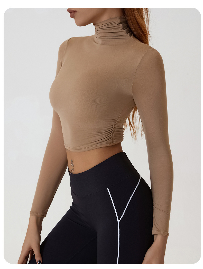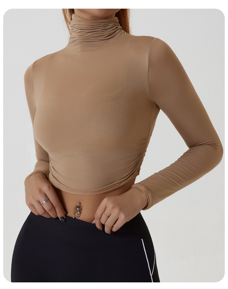 Yoga Clothes Long Sleeved Bottoming Shirt High Collar Short Section Autumn Clothes Women Cropped Sports Top