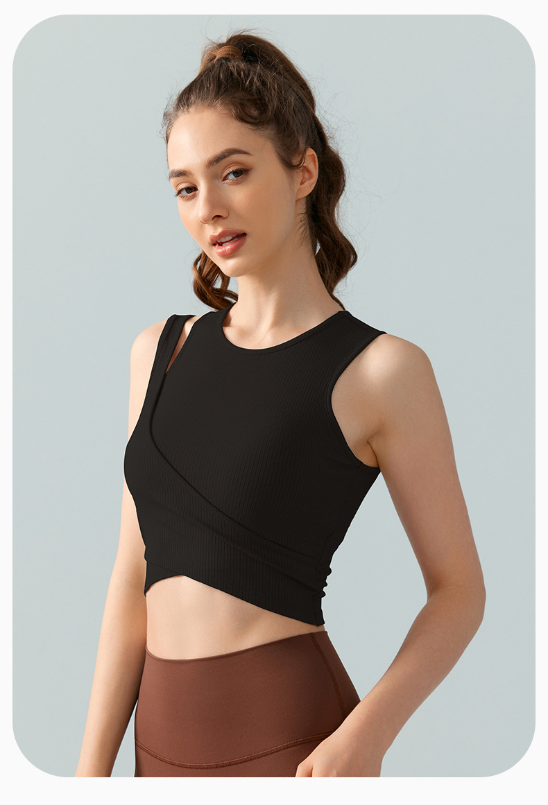 Yoga Clothes Vest with Chest Pad Women Stitching Faux Two Piece Bottoming Inner Wear Outer Wear Slim Running Sports Top Vest