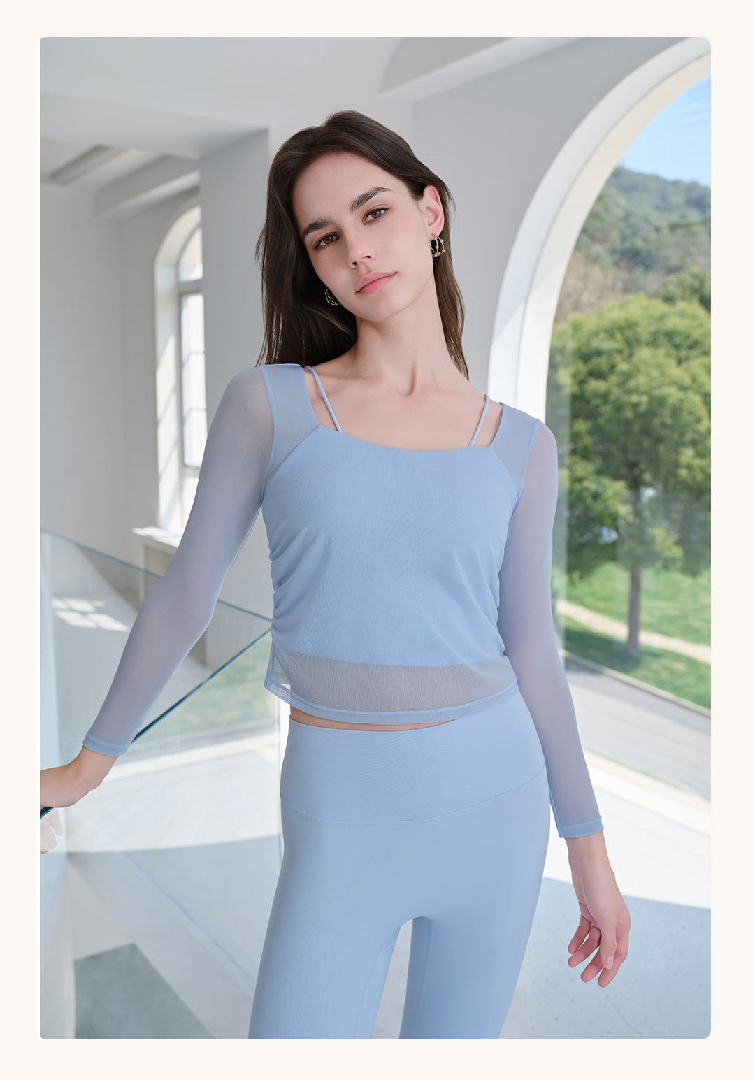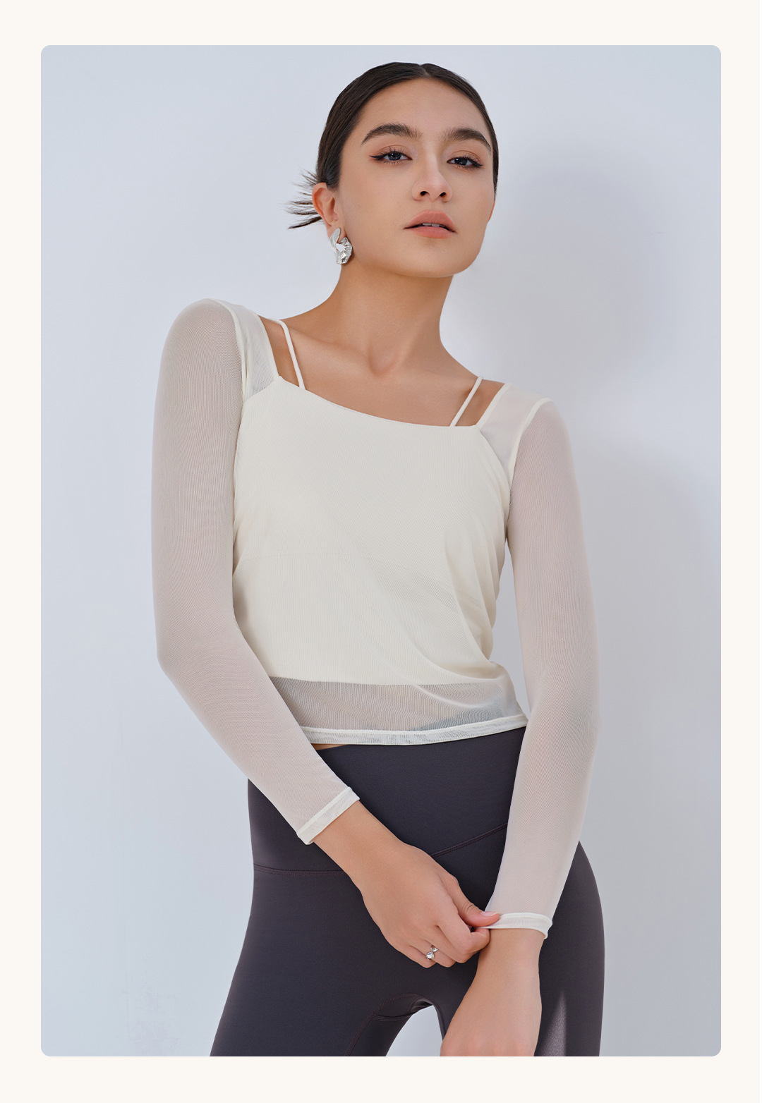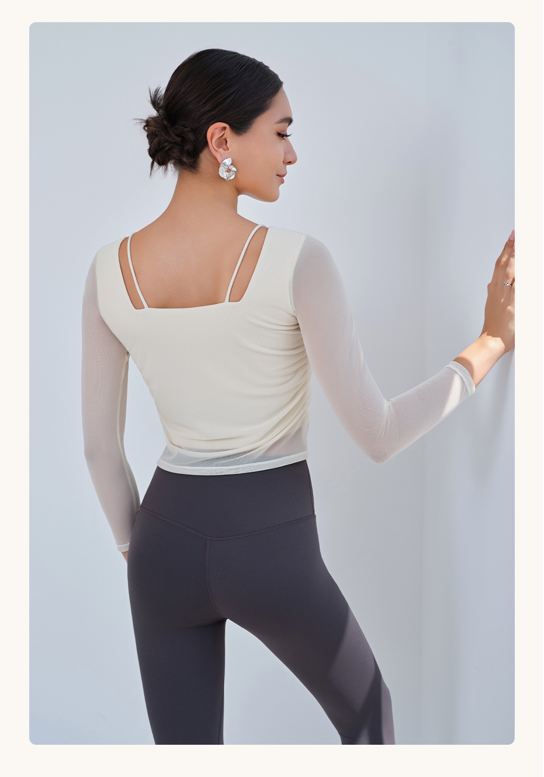 Yoga Clothes Women Spring Summer Exercise Yoga Clothes Top with Chest Pad Slim Outer Wear Running Fitness Mesh Breathable Long Sleeve