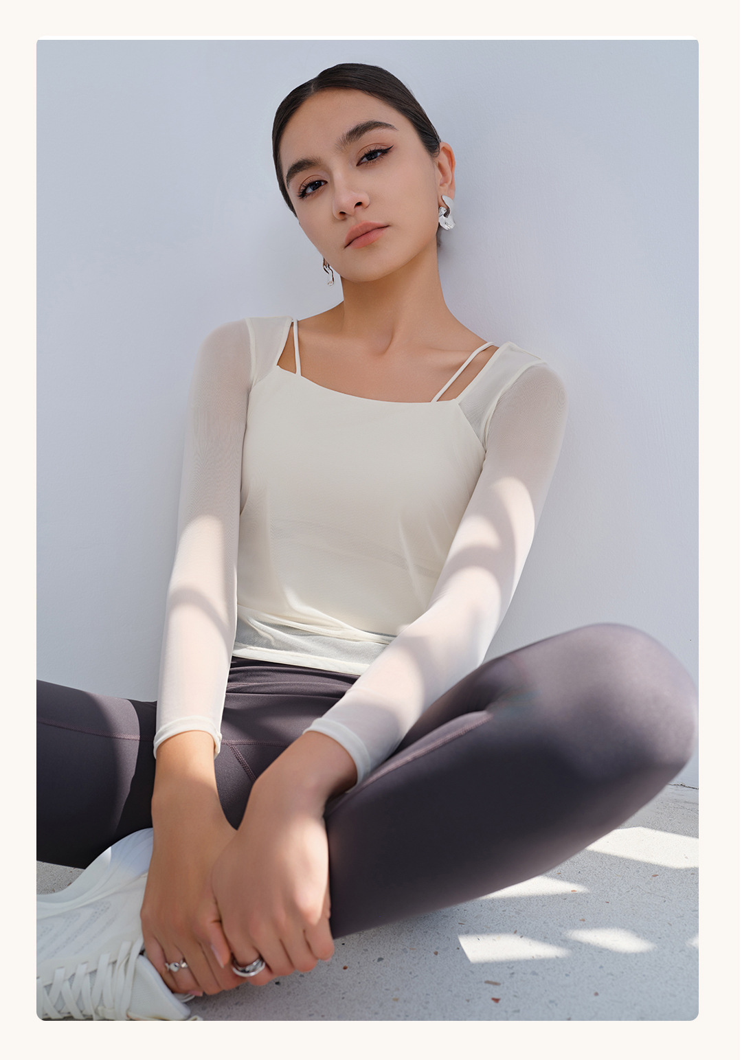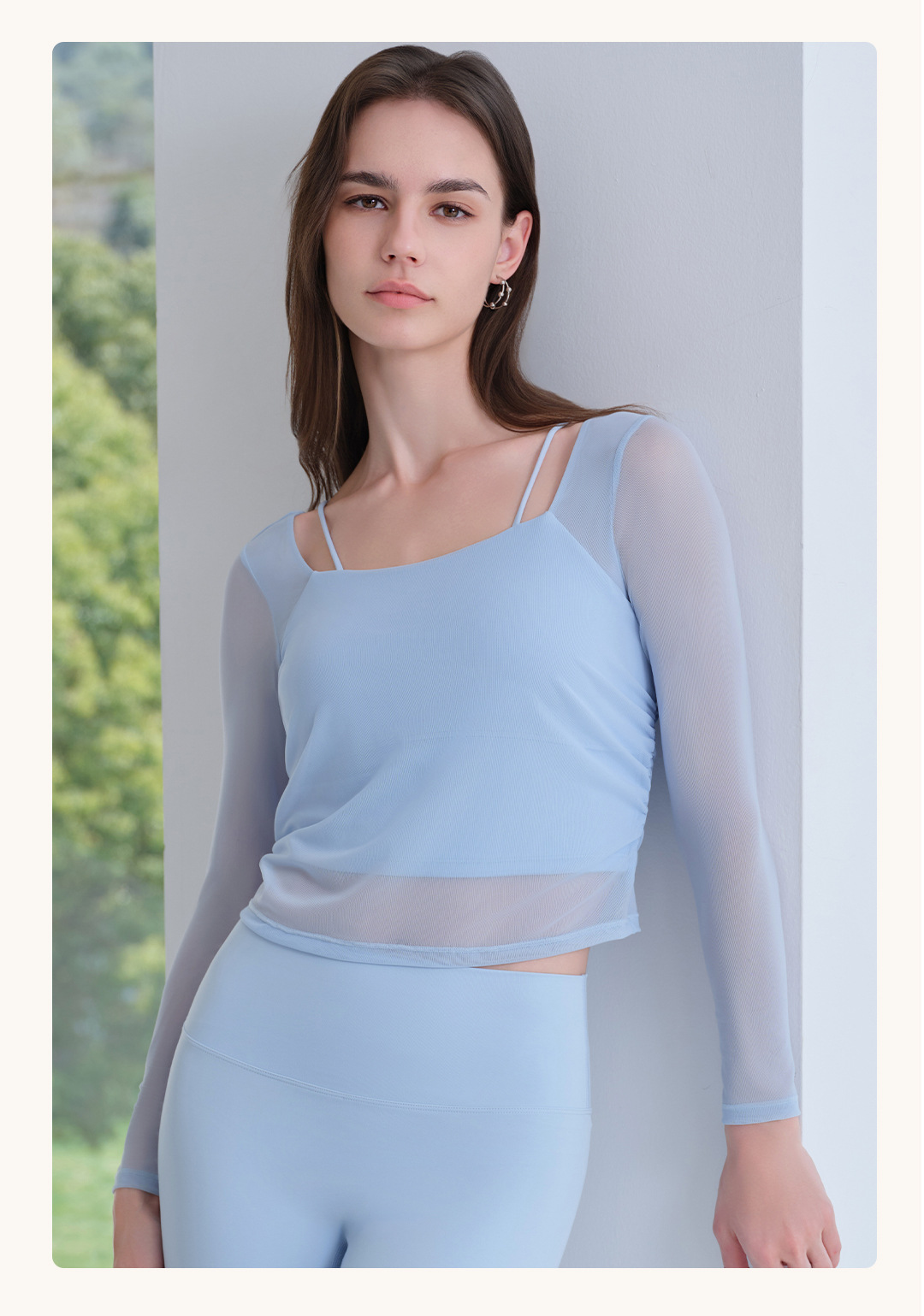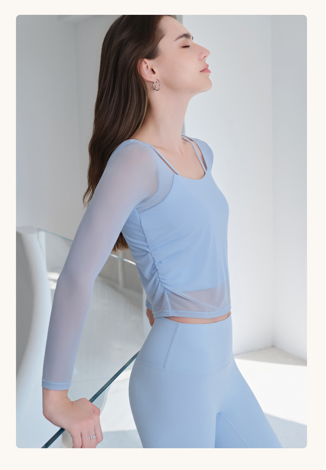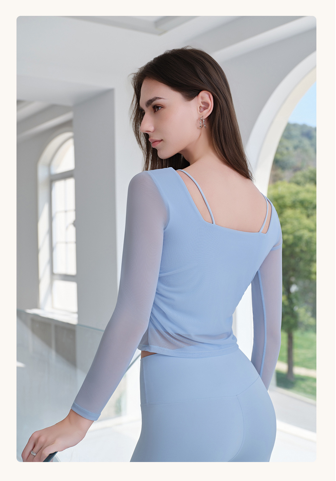 Yoga Clothes Women Spring Summer Exercise Yoga Clothes Top with Chest Pad Slim Outer Wear Running Fitness Mesh Breathable Long Sleeve