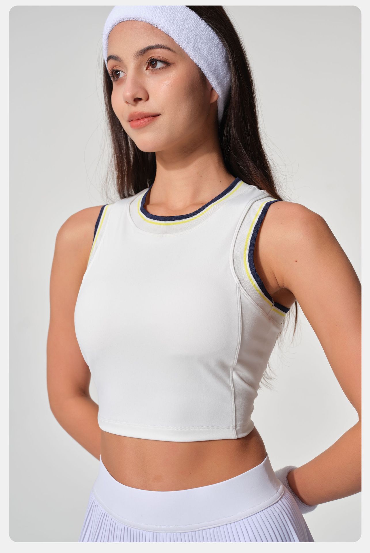 Yoga Exercise Vest Contrast Color Striped Detachable Chest Pad High Elastic Quick Drying Breathable Fitness Women Top